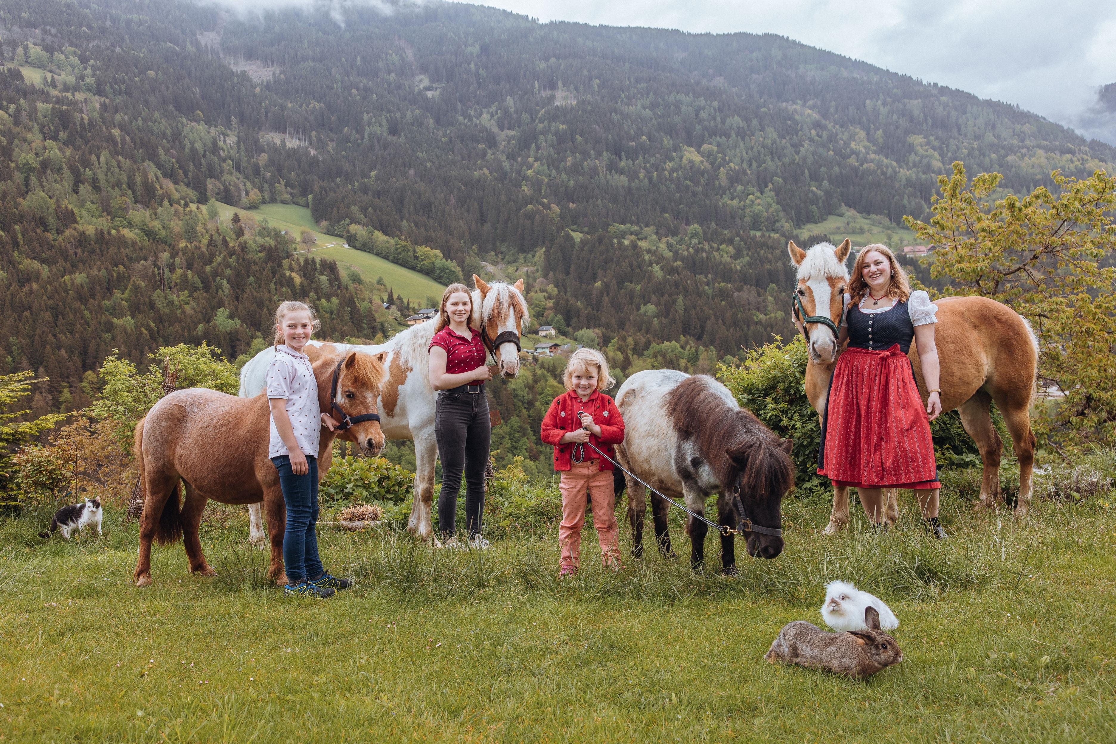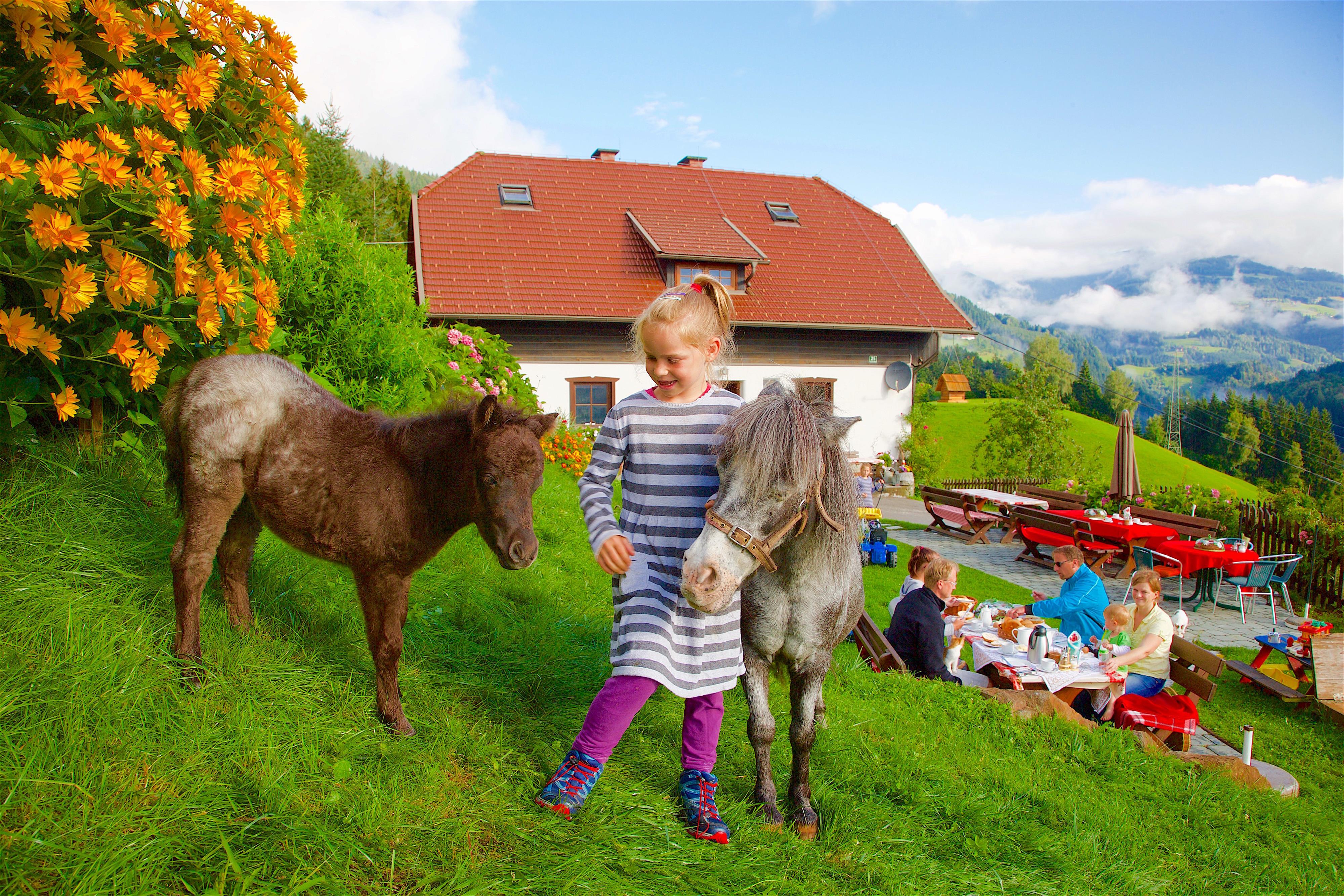 Zwischen Kühen, Katzen, Hasen und Streichelponys unser frisch gebackenes Bauernbrot holen und auf der Sonnenterrasse
