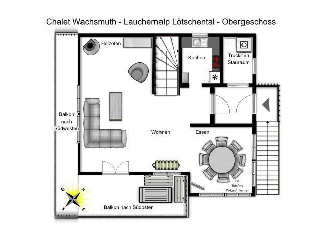 Draußen entfaltet das Chalet seine wahre Pracht inmitten der atemberaubenden Kulisse der Schweizer Zentralalpen. Eine Terrasse bietet den perfekten Ort, um die Aussicht und die Ruhe zu genießen. Der Außenbereich ist ideal geeignet, um sich nach einem Tag auf den Pisten oder Wanderwegen zu entspannen. Im Winter verwandelt sich die Umgebung in ein Schneeparadies mit direktem Zugang zum Skigebiet der Lauchernalp, während im Sommer die umliegende Natur zum Erkunden einlädt.
