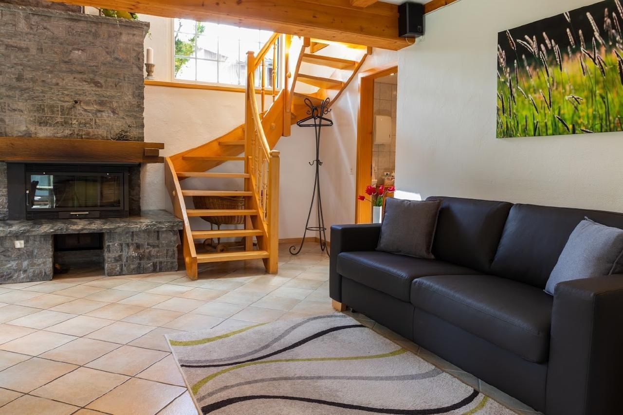 Im Inneren erwarten Sie alle Annehmlichkeiten, die Ihren Aufenthalt so komfortabel wie möglich machen. Neben einer voll ausgestatteten Küche, die keine Wünsche offenlässt, finden Sie eine gemütliche Wohn- und Essgegend mit einem einladenden Kamin, ideal für entspannte Abende. Die Unterkunft verfügt über ein charmantes Bad im Erdgeschoss mit WC, Pissoir und Dusche sowie eine zusätzliche Toilette mit Lavabo in der Galerie im zweiten Stock, direkt neben dem Schlafbereich, der komfortable Betten für eine erholsame Nacht garantiert.