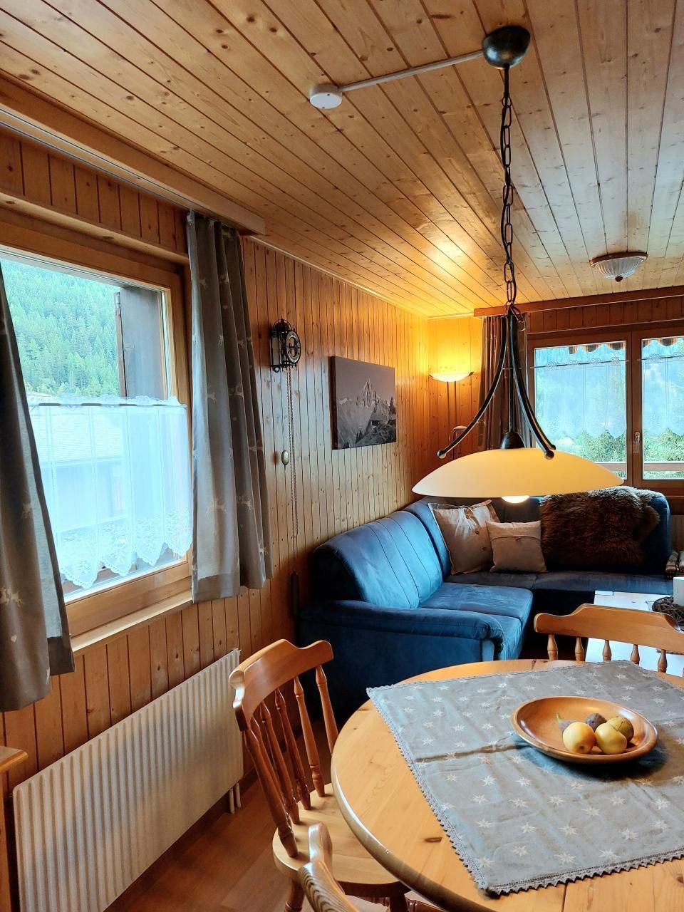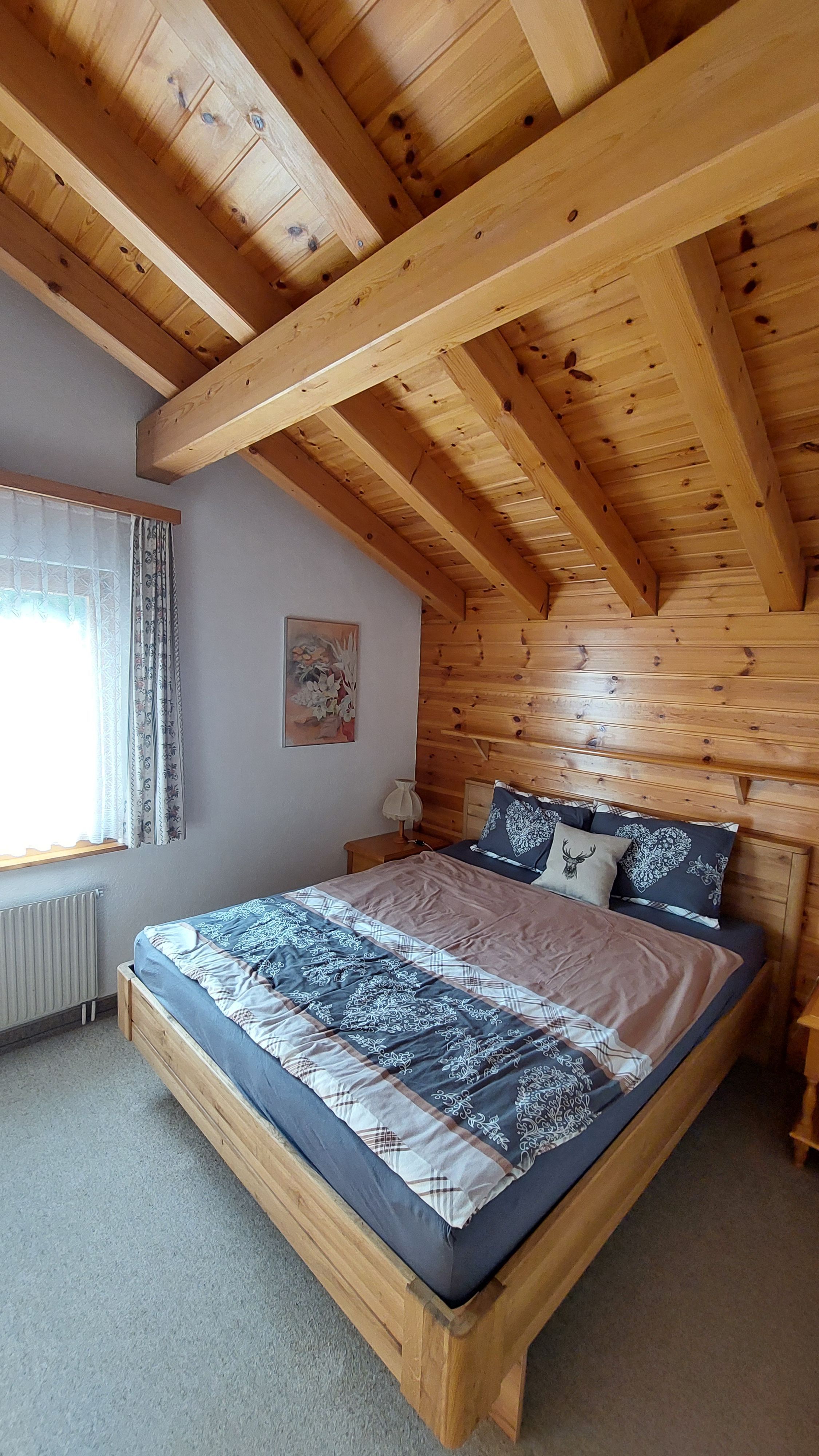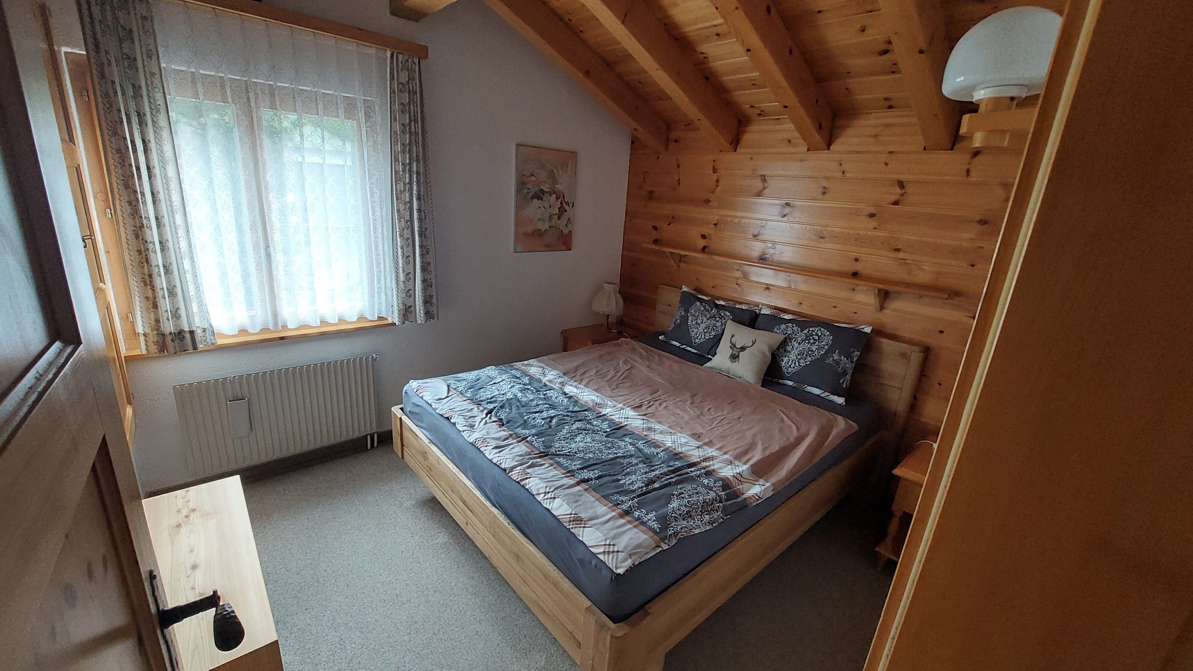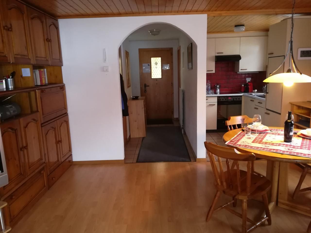 Die Innenausstattung der 3 1/2 Zimmer Duplex Wohnung zeichnet sich durch eine rustikale und gemütliche Atmosphäre aus, die sich über zwei Etagen erstreckt. Im Erdgeschoss finden Sie ein Gäste-WC, eine voll ausgestattete Küche, die neben einer Nespresso Kaffeemaschine mit Milchschäumer auch Grundausstattungen wie Gewürze und Zucker bietet, und ein großzügiges Wohnzimmer mit einem sonnigen, südwestlich ausgerichteten Balkon. Oben erwarten Sie zwei Schlafzimmer mit komfortablen Doppelbetten und ein Badezimmer mit Badewanne und Dusche. Trotz der umfangreichen Ausstattung verfügt die Küche, aufgrund ihrer Größe, über keine Abwaschmaschine.