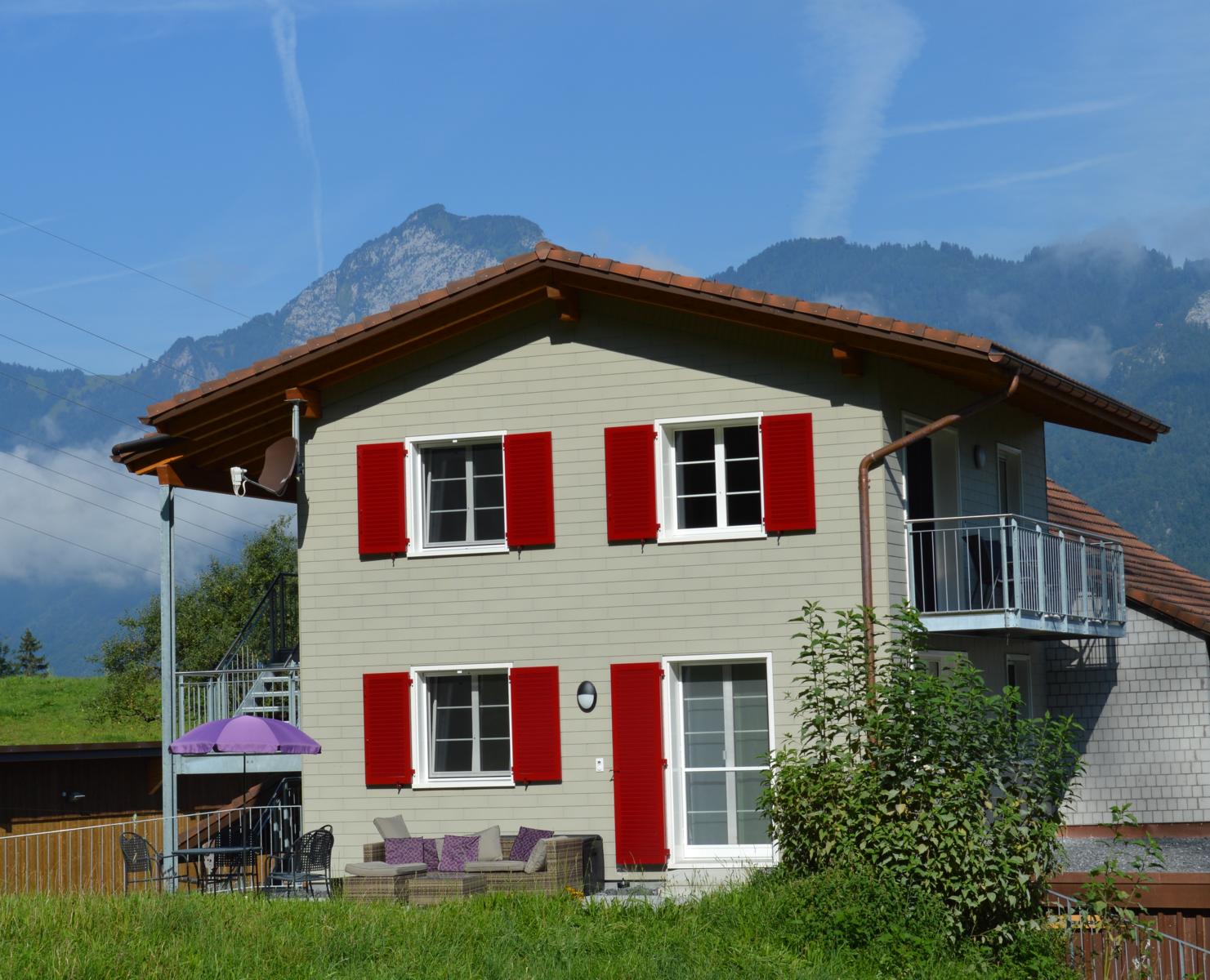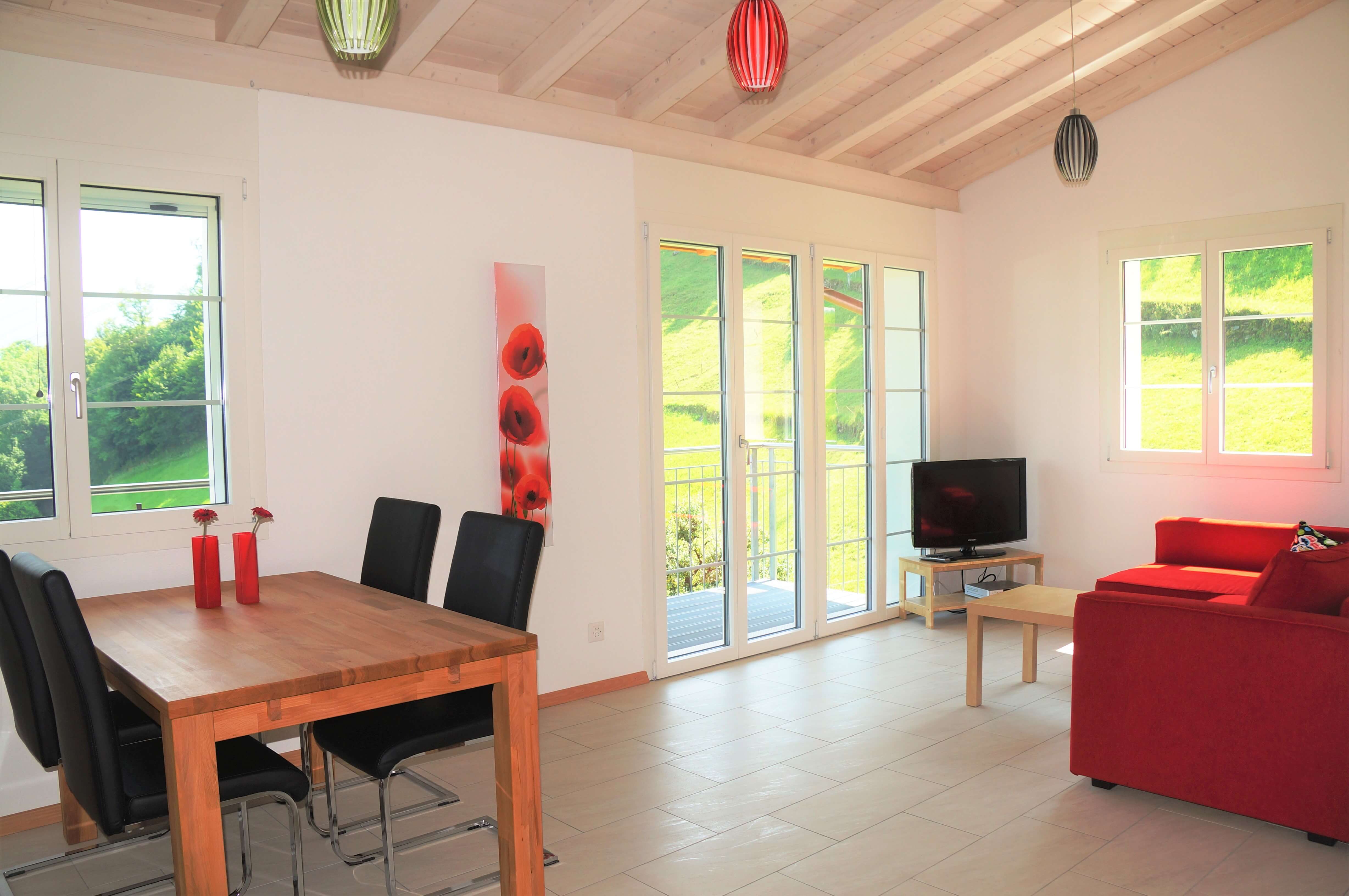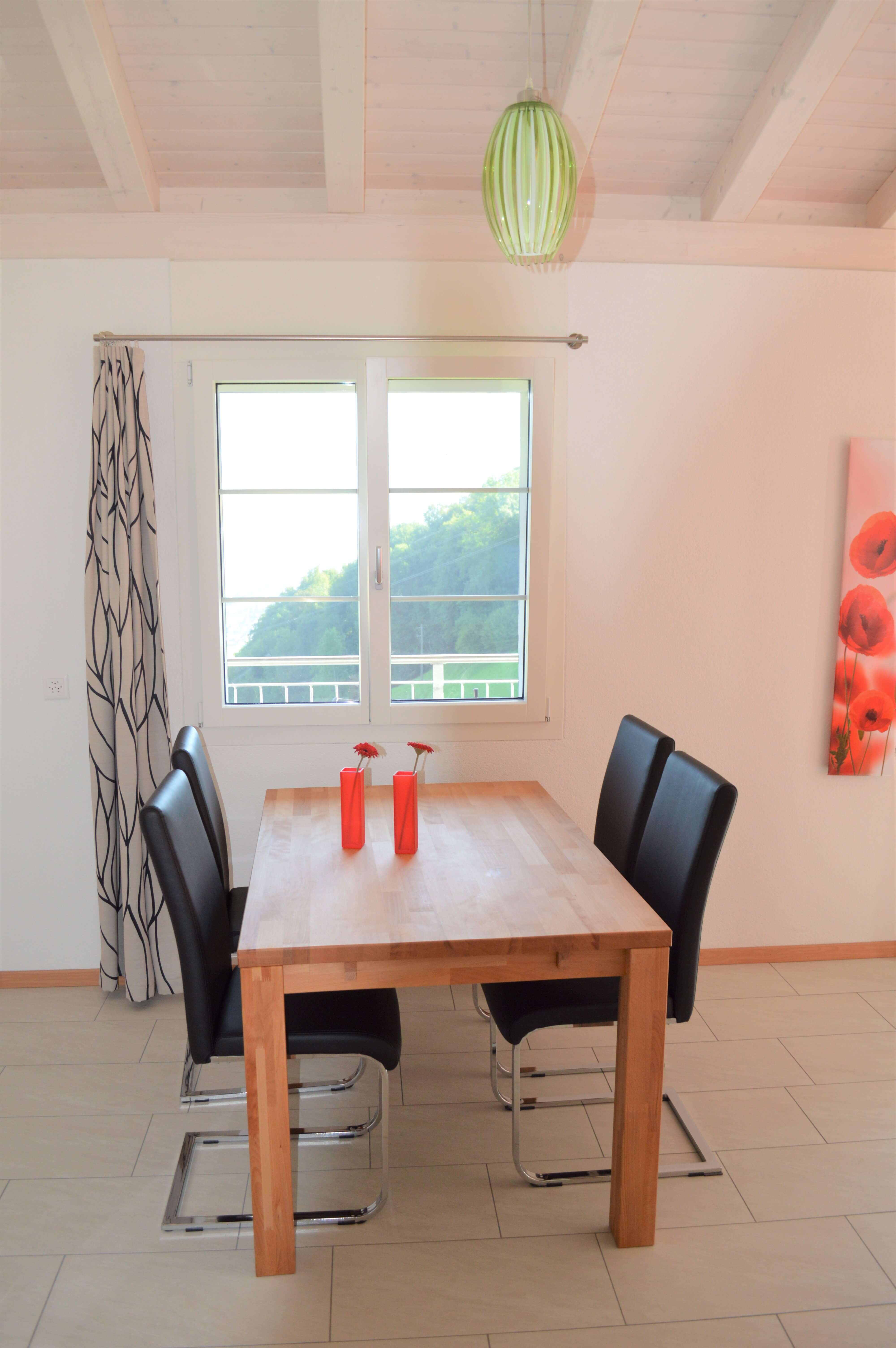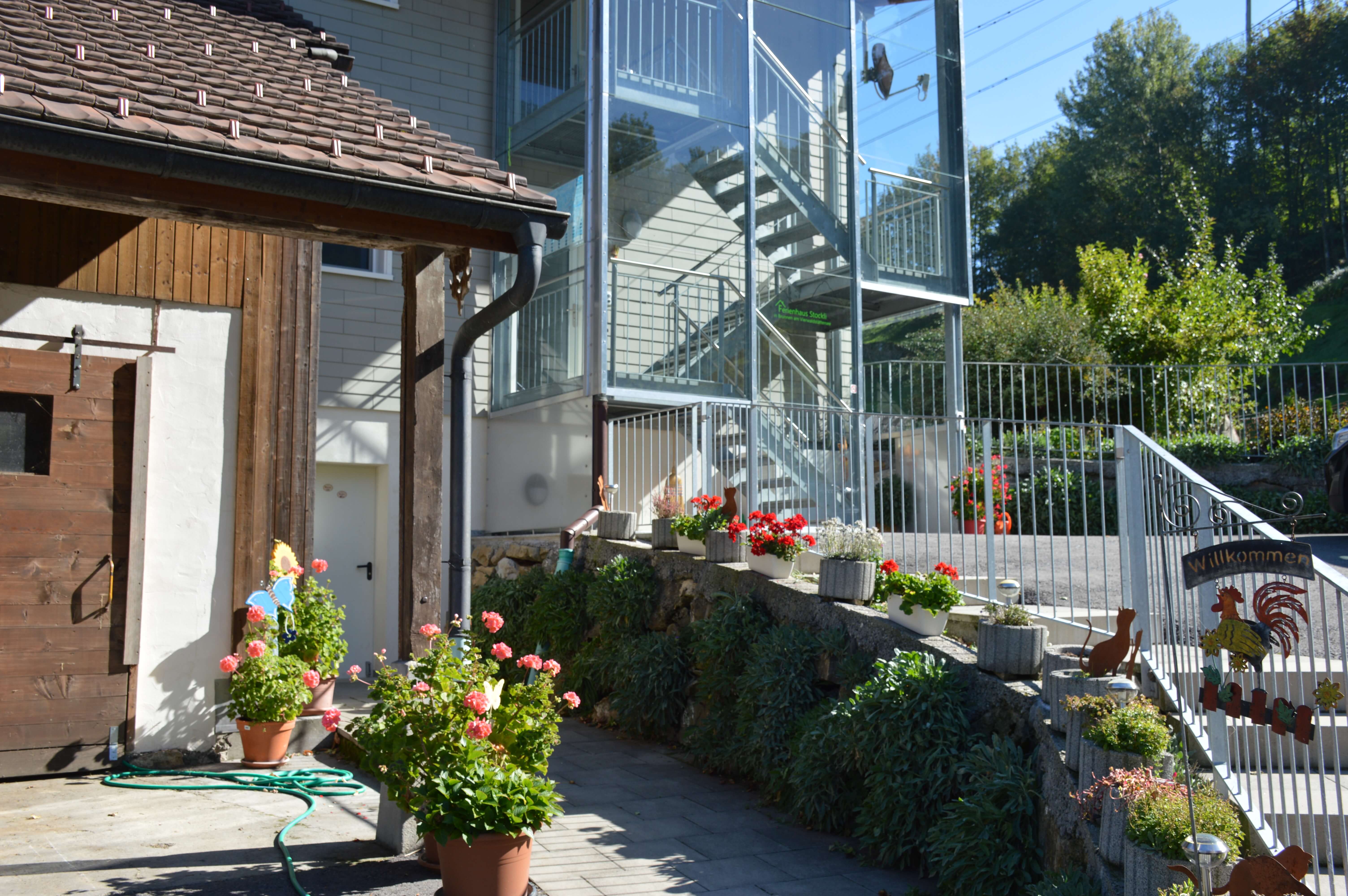 Ein Parkplatz, ein Abstellraum für Fahrräder und ein Spielplatz ist vorhanden. Geniessen Sie die Ruhe auf dem Balkon mit den Ziegen auf der Wiese.