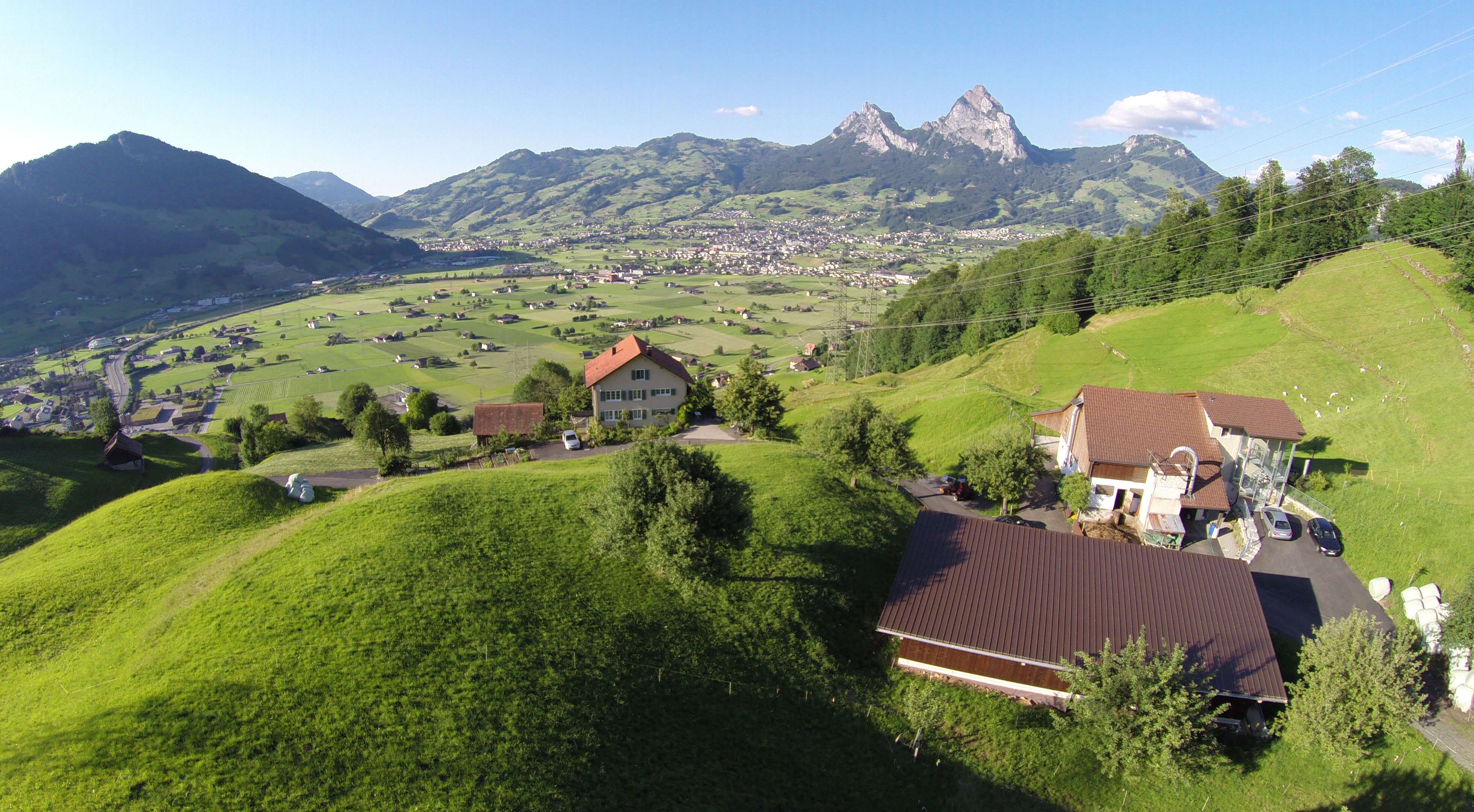 Dieser gemütliche Bauernhofanbau ist ausserhalb und oberhalb von Brunnen, mit schöner Sicht über den Talkessel Schwyz und die Berge, wunderbar ruhig gelegen.