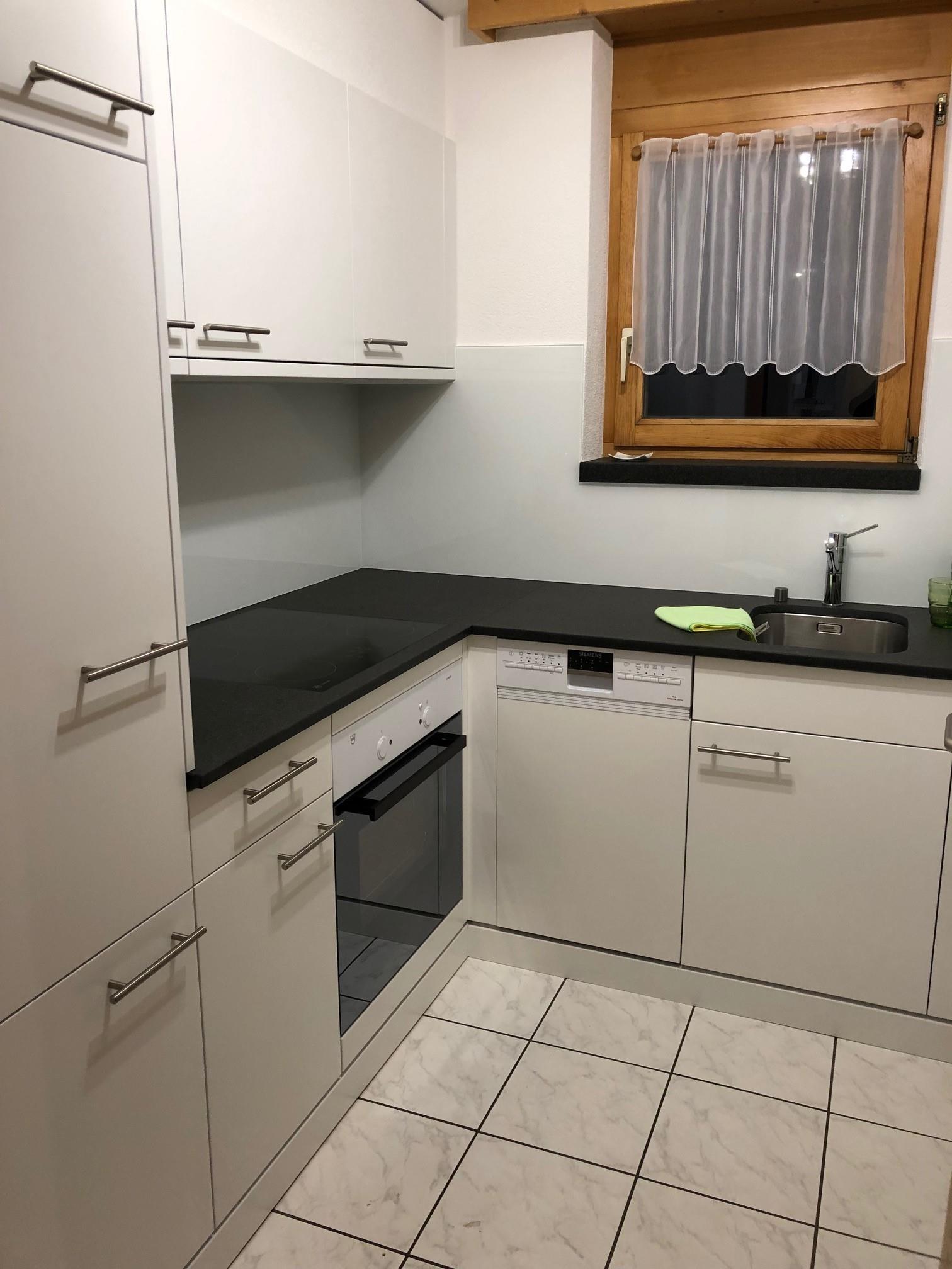 Die separate, kleine Küche ist gut eingerichtet mit Glaskeramikherd, Backofen, Kühlschrank, Geschirrspülmaschine, Filterkaffeemaschine. Die Küche ist vollständig und feriengerecht ausgestattet inkl. Küchenwäsche.