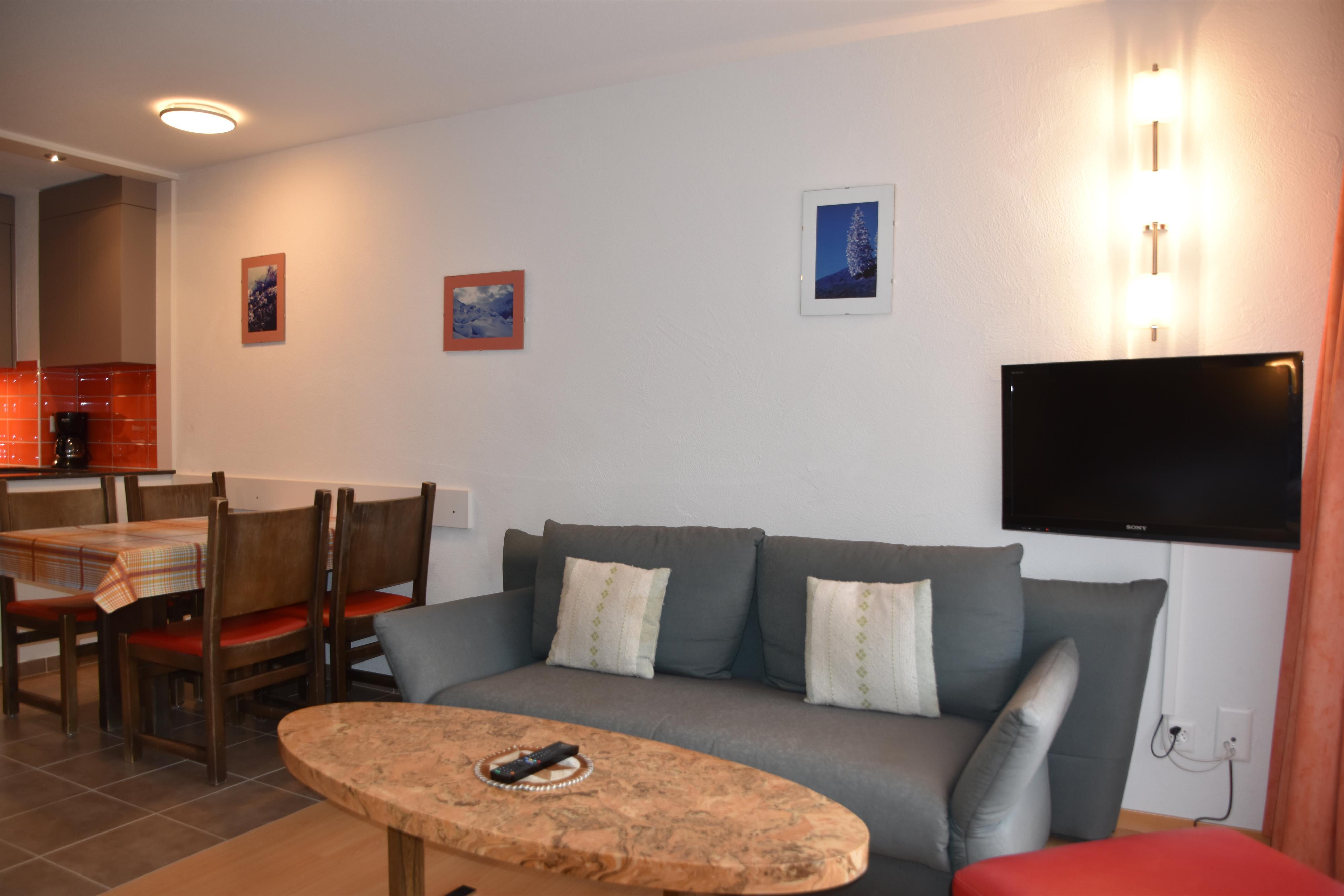 Das Appartement bietet Panoramablick und einen Südbalkon. Nichtraucher Wohnung! Haustiere nicht erlaubt! Schuh- und Skiraum. Personenlift. Gratis Skibus in 80 m. Einkaufsmöglichkeiten in der Nähe. Ermässigung der Parkplatzgebühren.