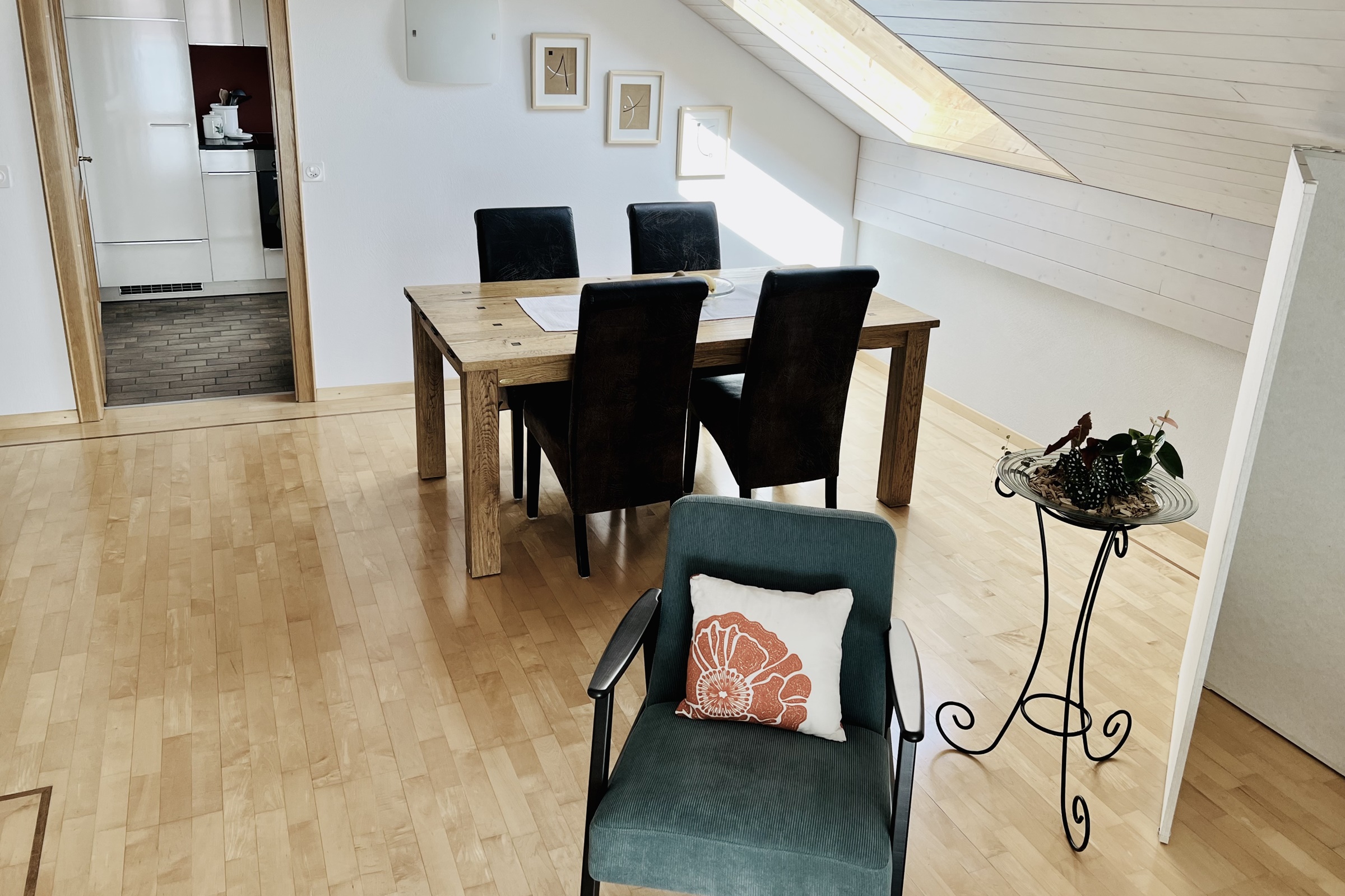 Die Ferienwohnung ist modern und gemütlich eingerichtet. Vom Wohnzimmer aus führt eine Tür direkt auf den Balkon, von dem aus man einen herrlichen Blick auf die umliegenden Bergketten geniessen kann. Die Wohnung verfügt über einen Aussenparkplatz.Technische Einrichtung