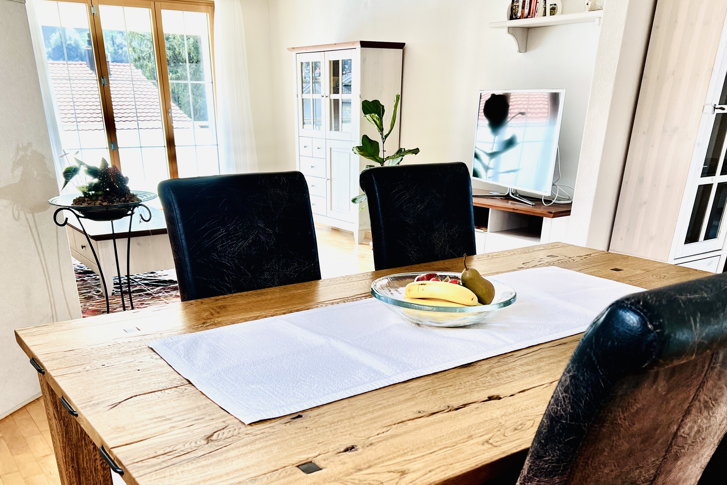 Die Ferienwohnung ist modern und gemütlich eingerichtet. Vom Wohnzimmer aus führt eine Tür direkt auf den Balkon, von dem aus man einen herrlichen Blick auf die umliegenden Bergketten geniessen kann. Die Wohnung verfügt über einen Aussenparkplatz. Kostenfreies WLAN, TV, Wäschetrockner und eine Waschmaschine stehen in der Wohnung zur Verfügung.