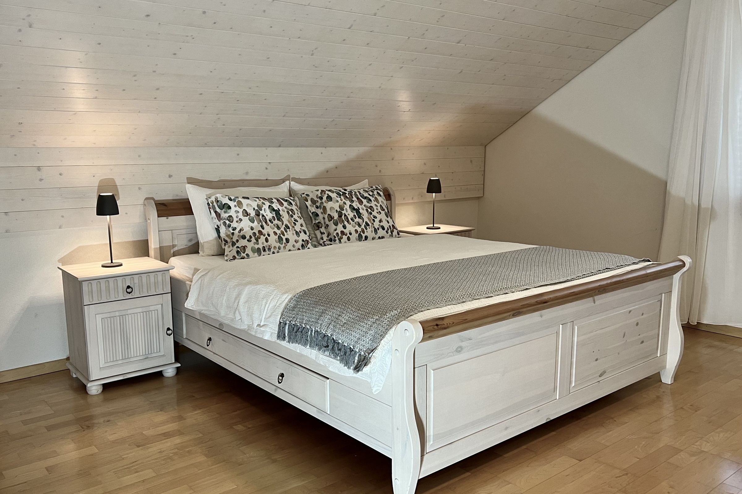 2 Schlafzimmer mit je einem grossen Doppelbett Badezimmer