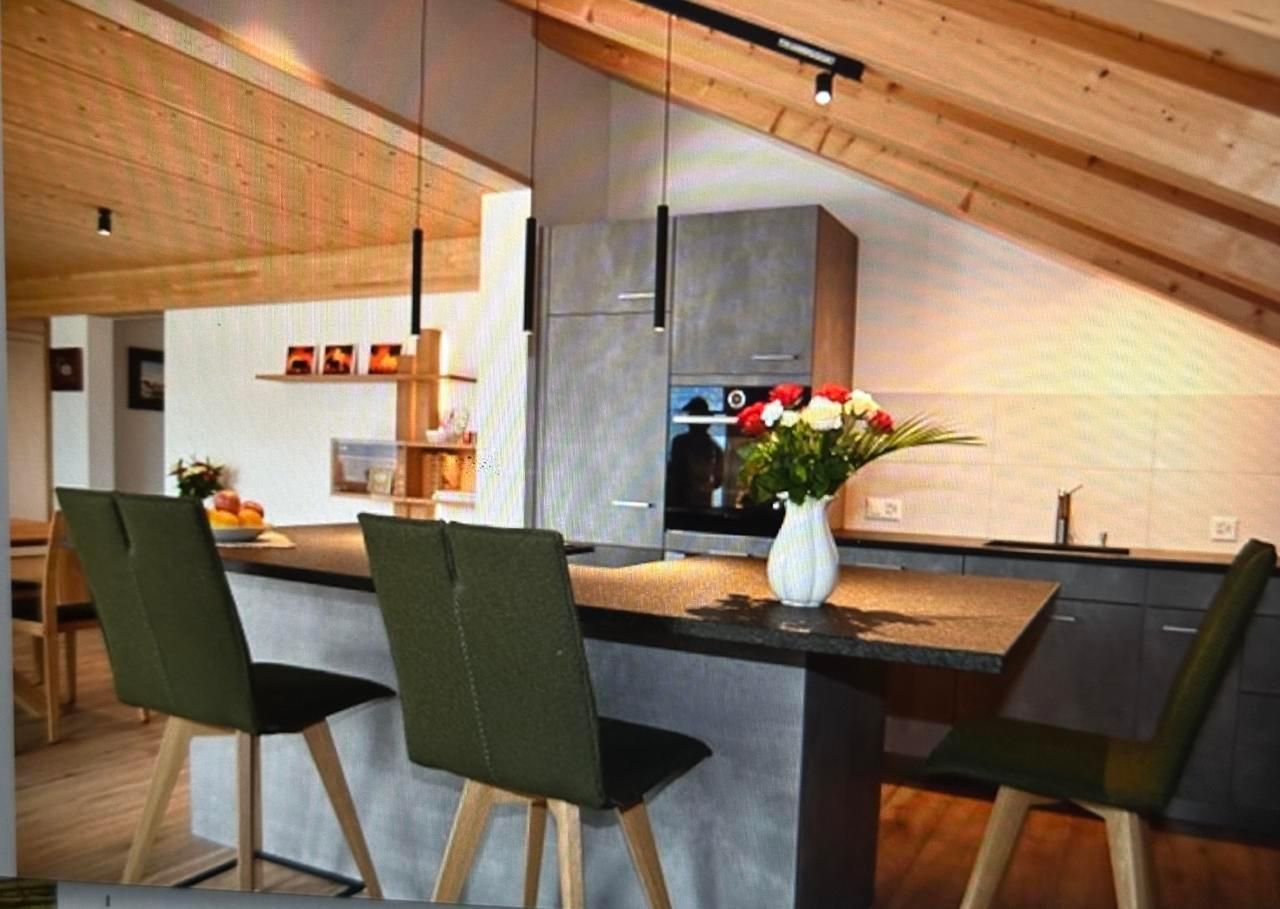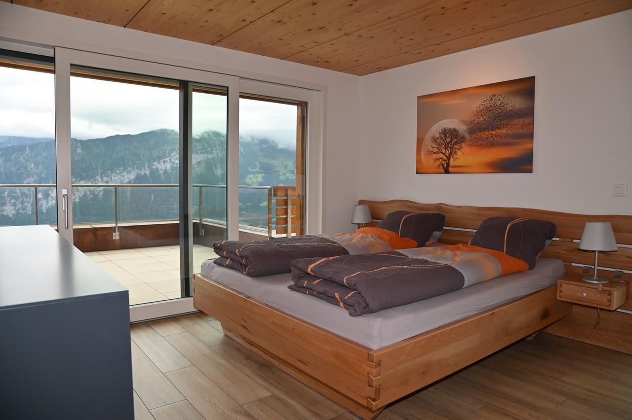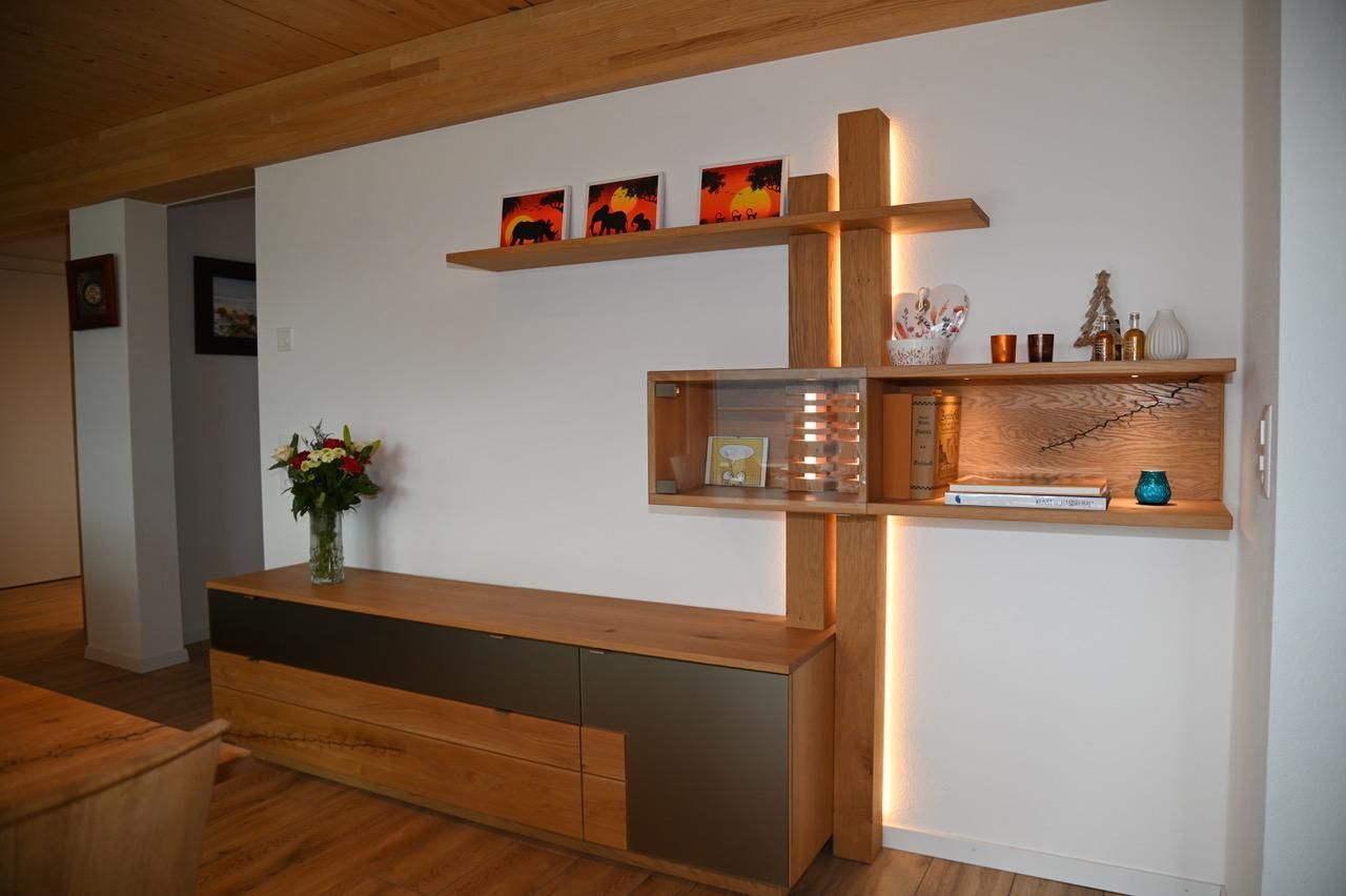Moderne und stilvoll eingerichtete 3.5 Zimmer Wohnung (ca. 100 m2) mit zwei grossen Balkons, erbaut im Jahre 2019. Luxuriöse, offene Wohn-Küche mit Granitabdeckung, Backofen, Kochinsel mit Glaskeramik Kochfeld (Induction) , Dunstabzug, Geschirrspüler, Kühlschrank mit Gefrierfach, Toaster, Kaffeemaschine, Fondue Set, Raclette Grill usw. Wohnzimmer mit Polstergruppe, Salontisch, Kabel-TV, Flachbildschirm 107cm, Internetanschluss (gratis W-LAN), und massivem Esstisch. 2 Schlafzimmer mit Doppelbetten, 2 Badezimmer, eines davon mit Dusche/Lavabo/Aquaclean WC, Spiegelschrank; das andere mit Dusche/Badewanne, Lavabo, WC, Spiegelschrank Waschmaschine und Wäsche Trockner. Entree, Küche, Bad und Wohnbereich mit Keramik-Plattenboden und Bodenheizung. Die Unterkunft verfügt über alles Erdenkliche, damit Gäste die Ferien in vollen Zügen geniessen können. Die wunderschöne und unverbaubare Berg- und Seesicht auf das UNESCO Weltnaturerbe mit Eiger, Mönch und Jungfrau bewundern Sie vom grossen Südbalkon aus (44m2) wo die bequemen Balkonmöbel zum Verweilen einladen. Die Abendsonne scheint auf den zweiten Balkon (105 m2) im Westen und bietet herrliche Aussicht auf den Thuner See, Richtung Niesen und den Eingang zum Kandertal. Für Kleinkinder nicht geeignet. Nichtraucher Wohnung; Keine Haustiere. Zur Wohnung gehört eine Garage (4.75 x 3.86 m), welche kostenlos benützt werden kann. Die Bushaltestelle (bei den Kirchen) ist nur ca. 100 m von der Wohnung entfernt und mit der Gästekarte kann der Bus kostenlos benützt werden. In knapp 20 Minuten ist man in Interlaken und am Thuner- oder Brienzersee.