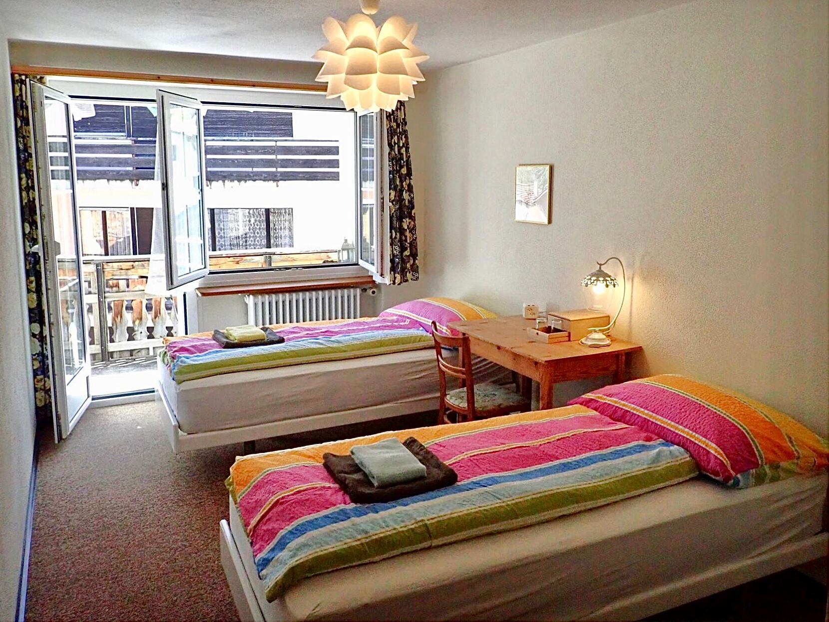 5-Zimmerwohnung ca. 93 m2. 4 Schlafzimmer mit 8 Einzelbetten. Wohn-Esszimmer, separate Küche mit Backofen, Kühlschrank, Geschirrspülmaschine, Kaffeemaschine und Fondue-Rechaud. Bad und WC in einem Raum. Balkon Fernseher. Telefon im Haus. Bettwäsche, Frottée- und Küchentücher vorhanden. Haustiere nicht erlaubt. Kinderbett mietbar. Nichtraucherwohnung. Zur Mitbenutzung: Skiraum. Öffentlicher Parkplatz. Unmittelbar beim Skilift.