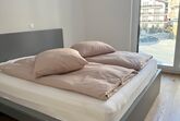 Zwei Schlafzimmer mit Doppelbetten. Jedes Schlafzimmer hat seine eigene Nasszelle mit Dusche/WC. Wohnzimmer mit Essnische / Küche. Süd- und Westbalkon.