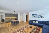 Das Apartment verfügt über 5 Schlafzimmer und 4 Badezimmer. 2 Badezimmer sind en-suite (1x mit Badewanne, Rest mit Dusche). 2 Schlafzimmer verfügen über je ein Doppelbett, 2 Schlafzimmer über je 2 Einzelbetten. Das 5. Schlafzimmer hat ein Stockbett mit je 160cm breite. Somit können im Apartment maximal 12 Personen übernachten. Das Wohnzimmer ist sehr geräumig mit grosser Couch und Esstisch. Die Küche ist sehr modern und es hat auch einen privaten Waschturm in der Wohnung Ebenfalls können die Gäste die Terrasse mit Garten nutzen.