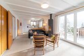 Die offene Küche ist voll ausgestattet und lässt keine Wünsche offen. Neben Herd, Backofen und Geschirrspüler finden Sie hier auch einen Kühlschrank, eine Waschmaschine und einen Trockner. Kaffeeliebhaber freuen sich über die vorhandene Kaffeemaschine.
