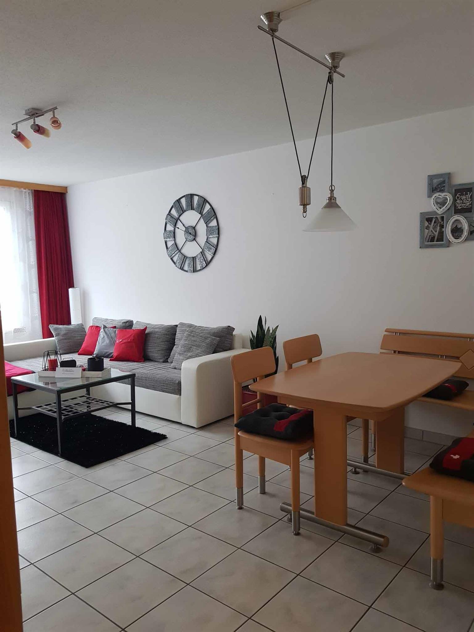 2.5 Zimmer Wohnung (ca. 59m2) im 3. Stock eines Mehrfamilienhauses mit Lift und Parkplatz. Die Wohnung hat eine herrliche Aussicht aufs Jakobshorn. Sie ist ideal gelegen. In nur wenigen Minuten erreichen Sie das Zentrum von Davos, den Bahnhof, die Langlaufloipe und die Jakobshornbahn. Bushaltestelle direkt vor dem Haus. Benützung mit Gästekarte gratis. Molkerei für kleinere Einkäufe auf der anderen Strassenseite. Zur Mitbenützung stehen ein Skiraum, ein Veloraum, eine Waschmaschine (nach Absprache) und im Sommer ein Kinderspielplatz zur Verfügung. Die Wohnung ist hell, hat viel Platz und verfügt über einen hohen Ausbaustandart. Balkon mit Gartenmöbeln. Das Wohn-Esszimmer ist mit einem Bettsofa für 2 Personen, 2 komfortablen Sesseln, einem Sideboard und einem Esstisch ausgestattet. Ein Flatscreen-TV, Radio-CD Player und WLAN sind vorhanden. Playstation auf Anfrage. Schlafzimmer mit 3 Einzelbetten, Kleiderschränke, Kommode. Separate Küche mit 4 Plattenherd, Backofen, Kühlschrank, Abwaschmaschine. Mikrowelle, Toaster, Raclette, Fondue, Kaffeemaschine vorhanden. Separater Esstisch für 2-3 Personen. Badezimmer mit Badewanne und Duschvorrichtung, 1 Lavabo, 1 WC. Eingang mit Garderobenschrank. Die gesamte Wohnung ist mit Plattenboden und Fussbodenheizung. Von der Tiefgarage besteht ein direkter Zugang ins Haus. Rauchen ist innerhalb der Wohnung verboten. Auf dem Balkon erlaubt. Haustiere sind nicht erlaubt.