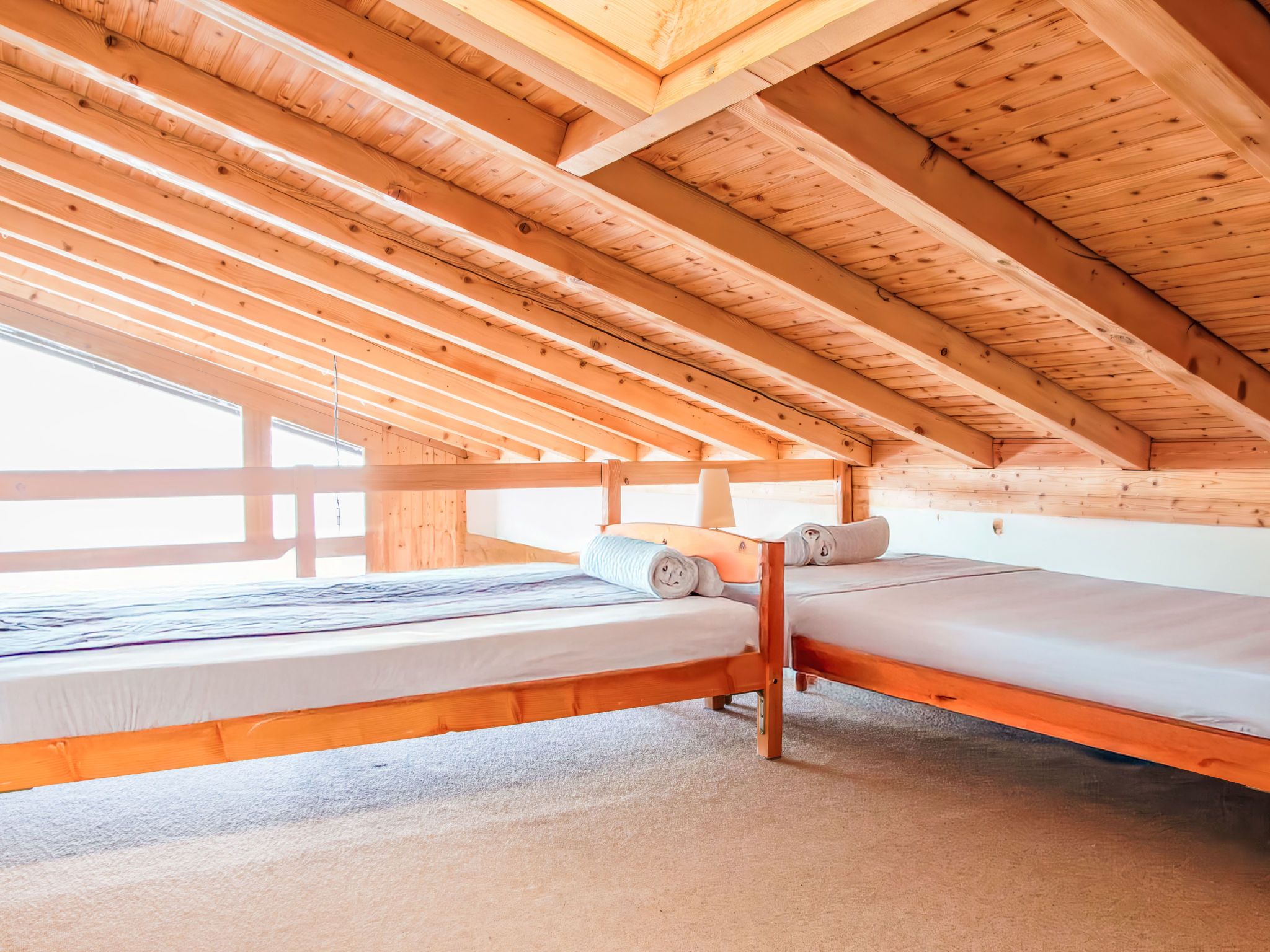 Bietschorn 22, 3-Zimmer-Wohnung 100 m2 auf 2 Stockwerken im 4. Stock. Schön eingerichtet: Wohn-/Esszimmer mit offenem Kamin (nur Deko), Kabel-TV. Ausgang zum Balkon, Richtung Norden. 1 Zimmer mit 1 franz. Bett (180 cm, Länge 200 cm). Ausgang zur Terrasse, Richtung Süden. Küche (Backofen, Geschirrspüler, 4 Induktionskochplatten, Toaster, Wasserkocher, Mikrowelle, elektrische Kaffeemaschine, Kapseln für die Kaffeemaschine (Nespresso) extra, Racletteofen, Fondue Set (Chinoise, Käse)). Bad/Dusche/WC. Dachgeschoss: abgeschrägte Galerie mit Dachfenster mit 2 Betten (90 cm, Länge 190 cm). 1 abgeschrägtes Zimmer mit 2 Betten (90 cm, Länge 190 cm). Bad/WC. Balkon, Terrasse. Terrassenmöbel. Sehr schöne Panoramasicht auf die Berge und das Tal. Zur Verfügung: Haartrockner. Internet (Wireless LAN, gratis). Parkplatz Nr. 22 (überdacht), Höhe 200 cm. Bitte beachten: Nichtraucher-Unterkunft. Anstelle eines abgeschlossenen Schlafzimmers befinden sich manche Schlafplätze in einem offenen Bereich (Galerie, Nische etc.).
