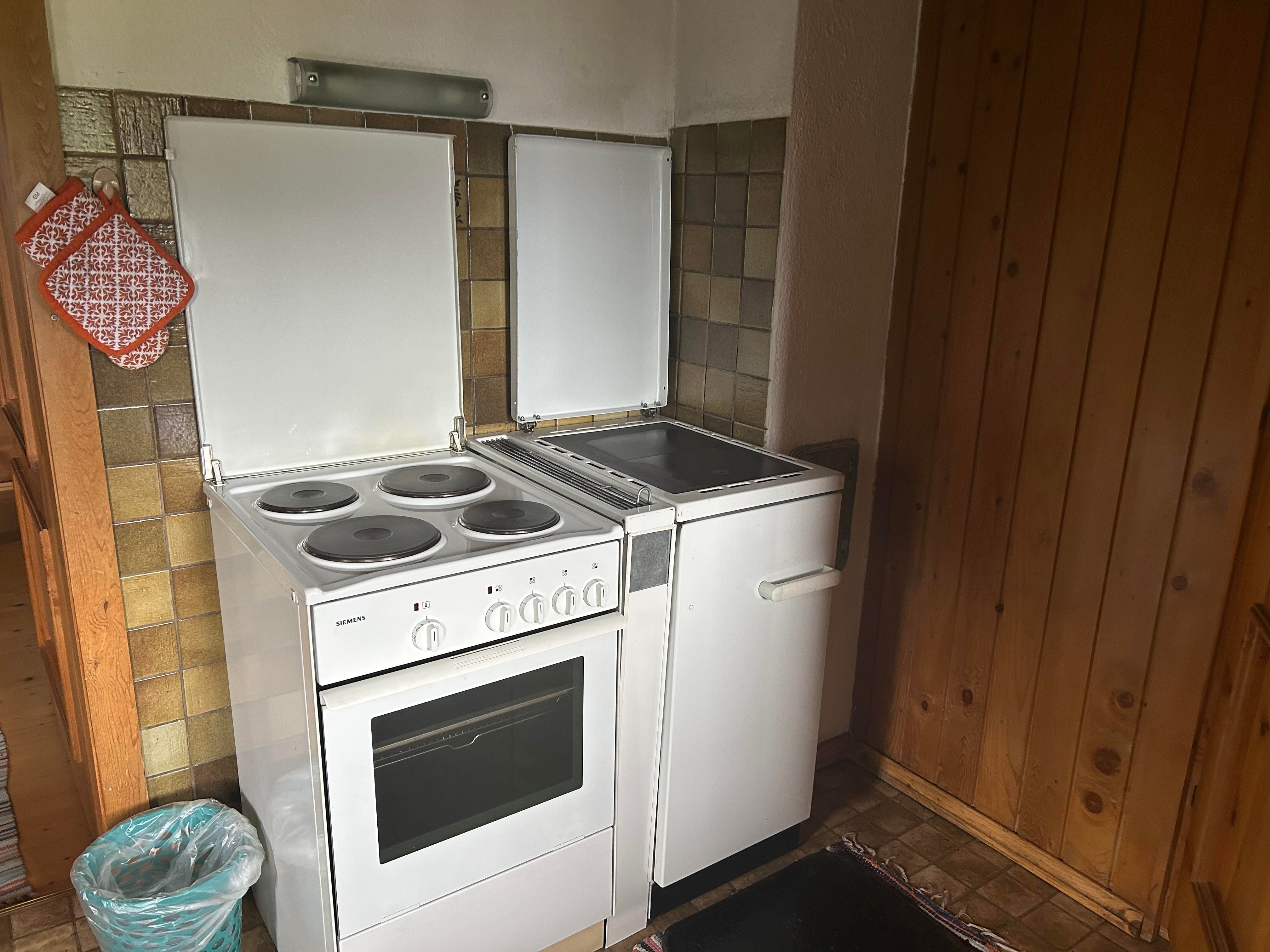 Ausgestattet mit einer gemütlichen Wohnküche, sowie Kochutensilien und Holzofen, 2 Schlafzimmer (Doppelbetten), Bad mit Waschtisch und Dusche, WC,
