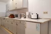• offene Küche mit 4-Plattenherd, Kühlschrank, Geschirrspüler, Kaffeemaschine, Wasserkocher, Toaster, Mikrowellengerät