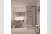 • Bad mit Dusche, Waschbecken und WC, Haartrockner