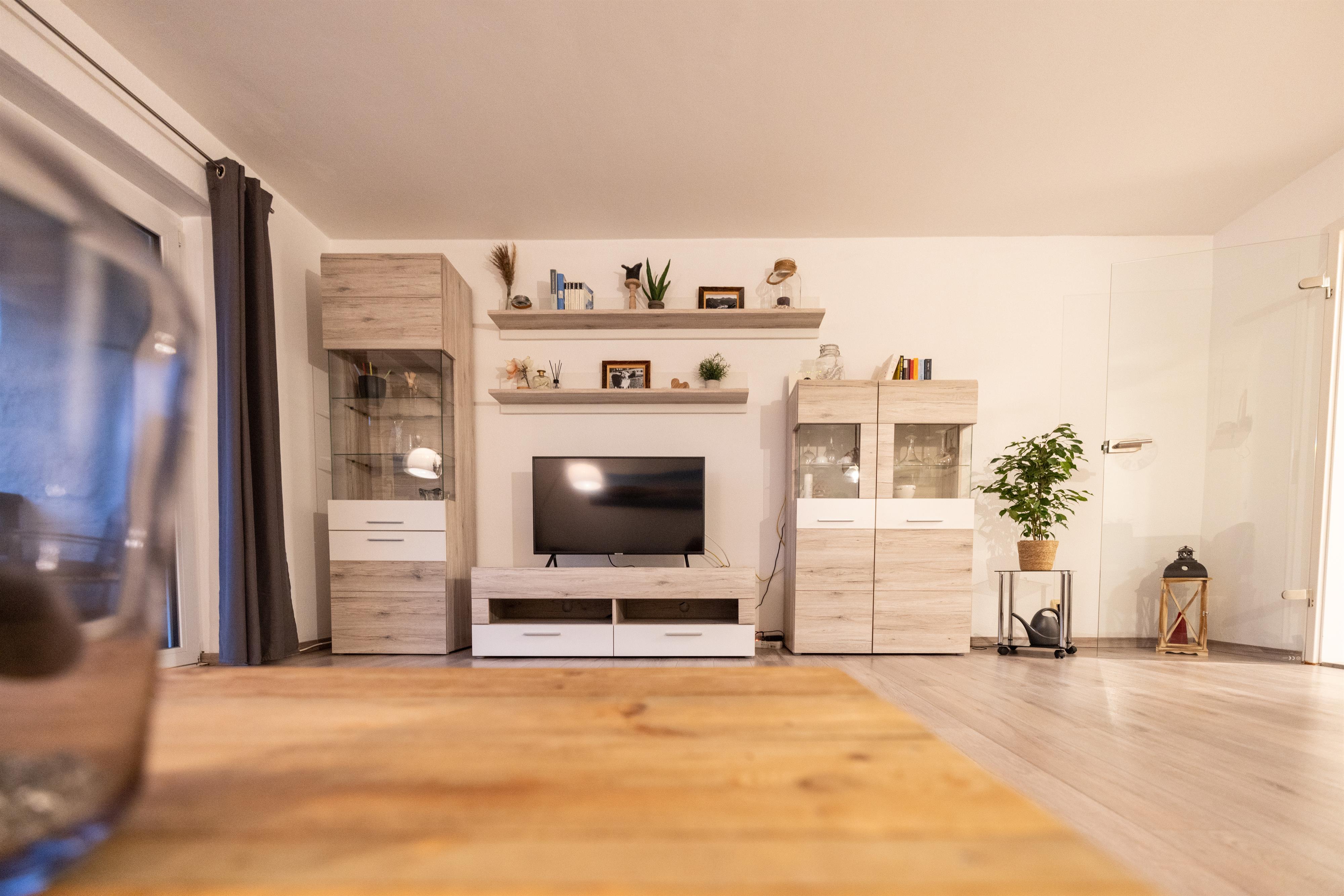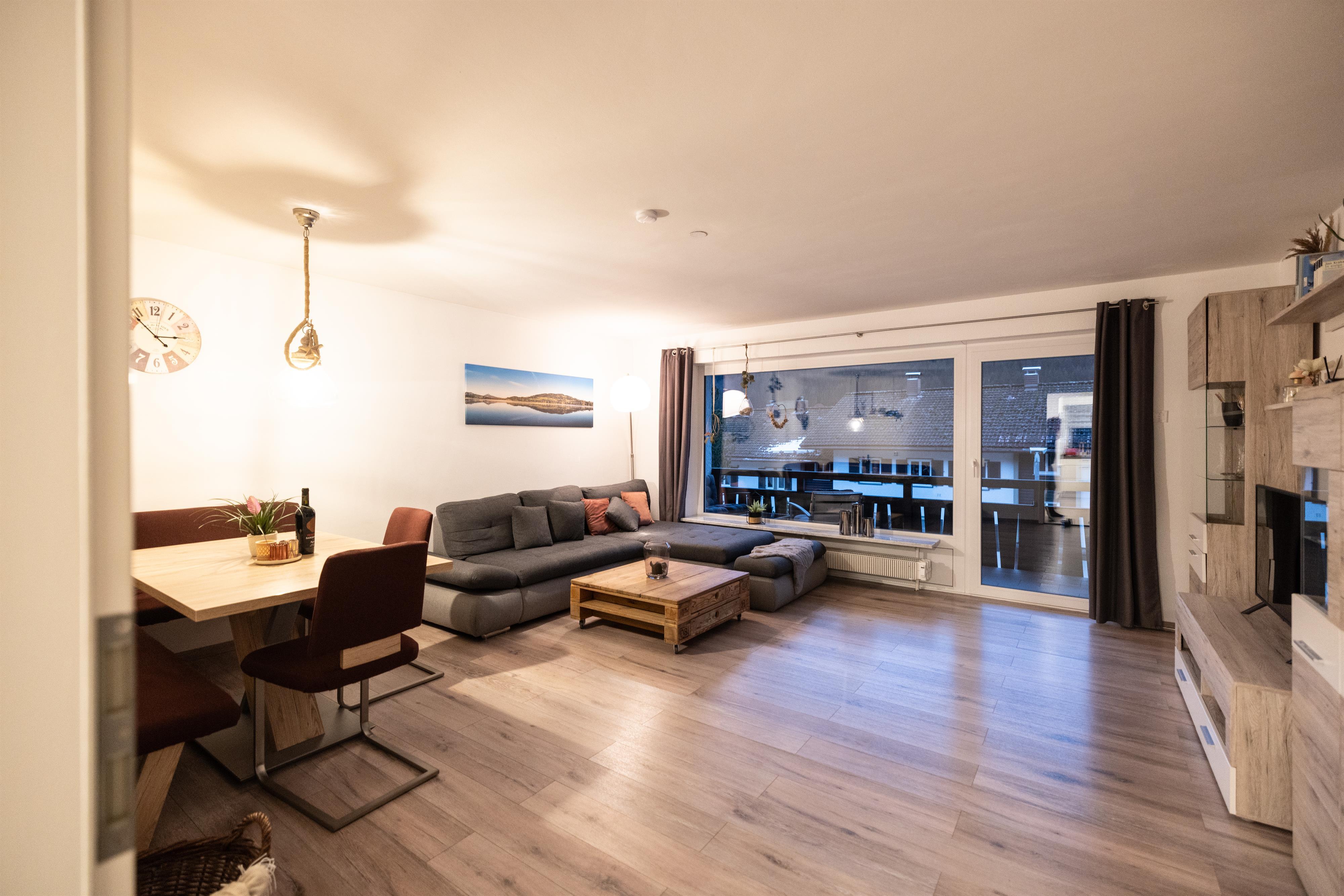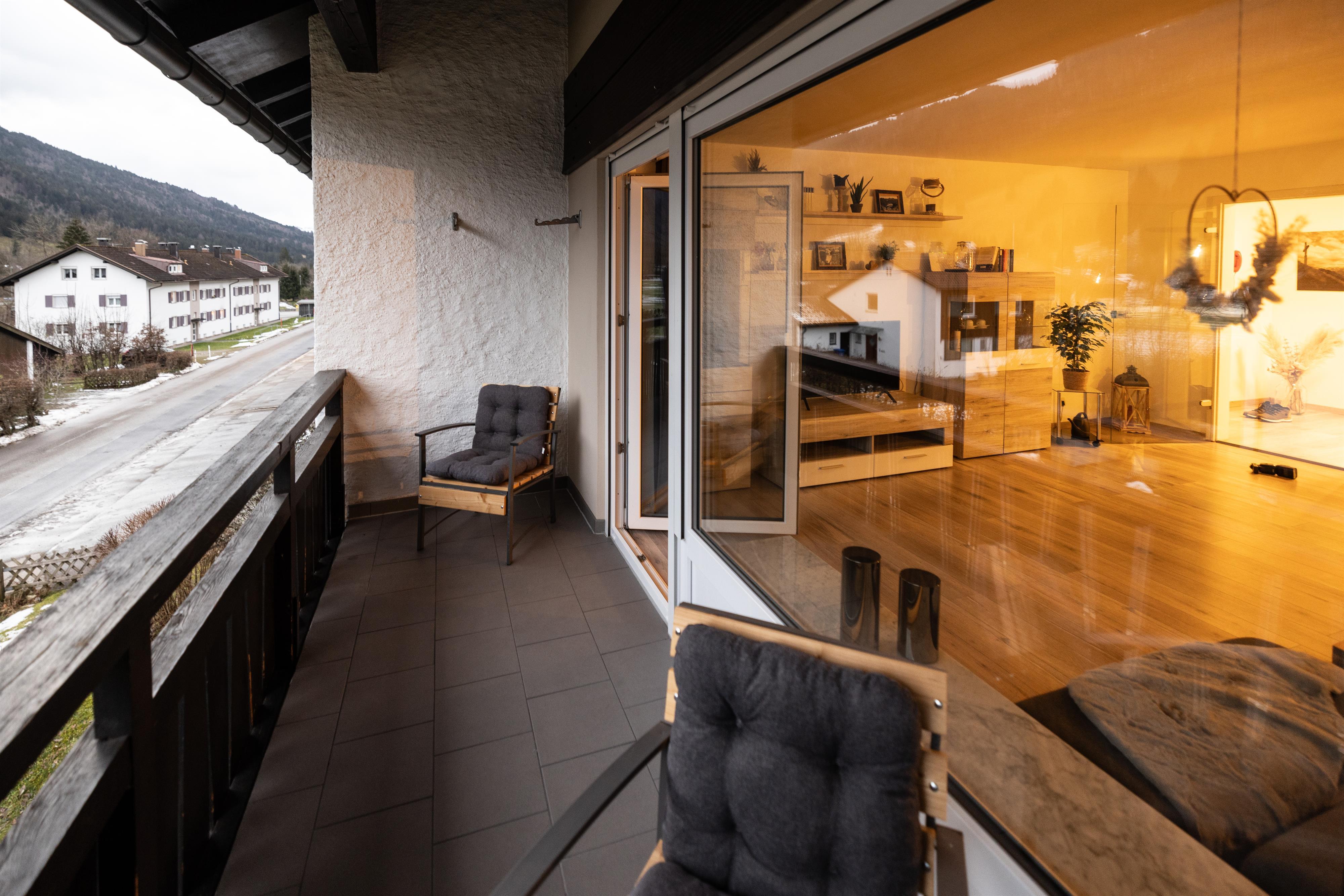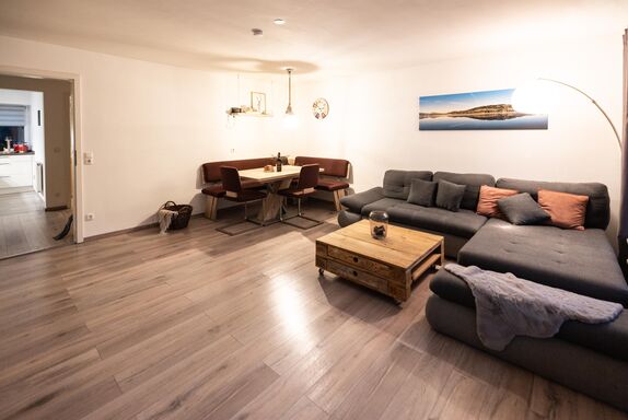 Gemütliche Ferienwohnung mit großzügigem Wohn-/Essbereich und direktem Zugang zum Südbalkon. Herrlicher Blick in die Hindelanger Bergwelt und die umliegende Natur.