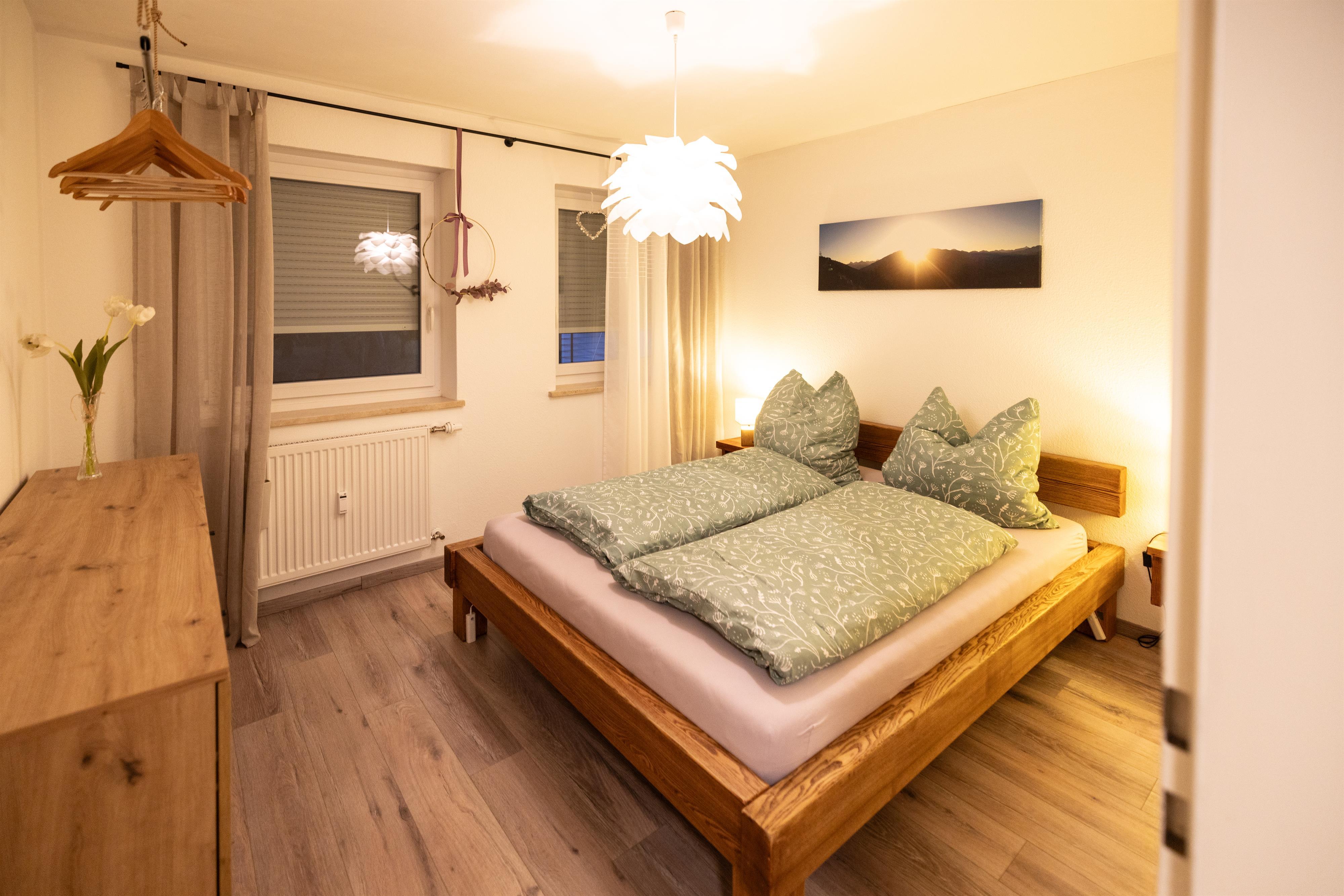 Fewo Alpentraum: Eine Ruheoase fürs Herz Stellen Sie sich vor, Sie wachen in der Fewo Alpentraum auf und genießen den atemberaubenden Ausblick auf die majestätischen Allgäuer Alpen. Die große Fensterfront Richtung Süden erhellt Ihr Urlaubsdomizil und lässt die Schönheit der Natur direkt in Ihr Zimmer strömen. Der Südbalkon lädt dazu ein, jeden Sonnenstrahl in vollen Zügen zu genießen – perfekt für entspannte Stunden mit Blick auf die umliegenden Berge.