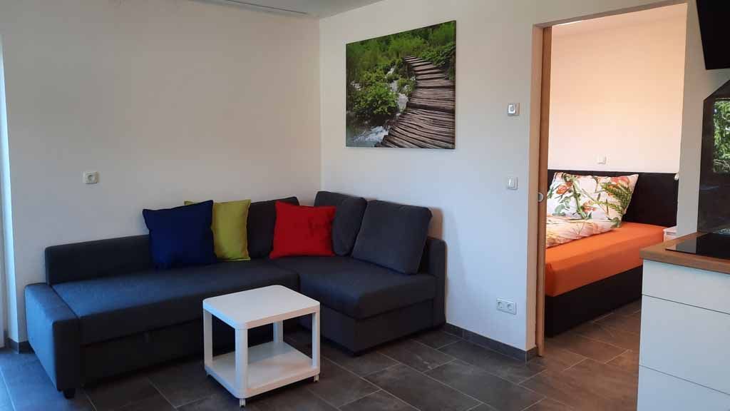 Die Ferienwohnung ist seit Juli 2021 in Betrieb und und ist bestens für 2 Personen, maximal mit einem kleinen Kind geeignet. Sie verfügt über einen kleinen vollausgestatteten Küchenblock und ein Schlafzimmer mit Dusche und WC.