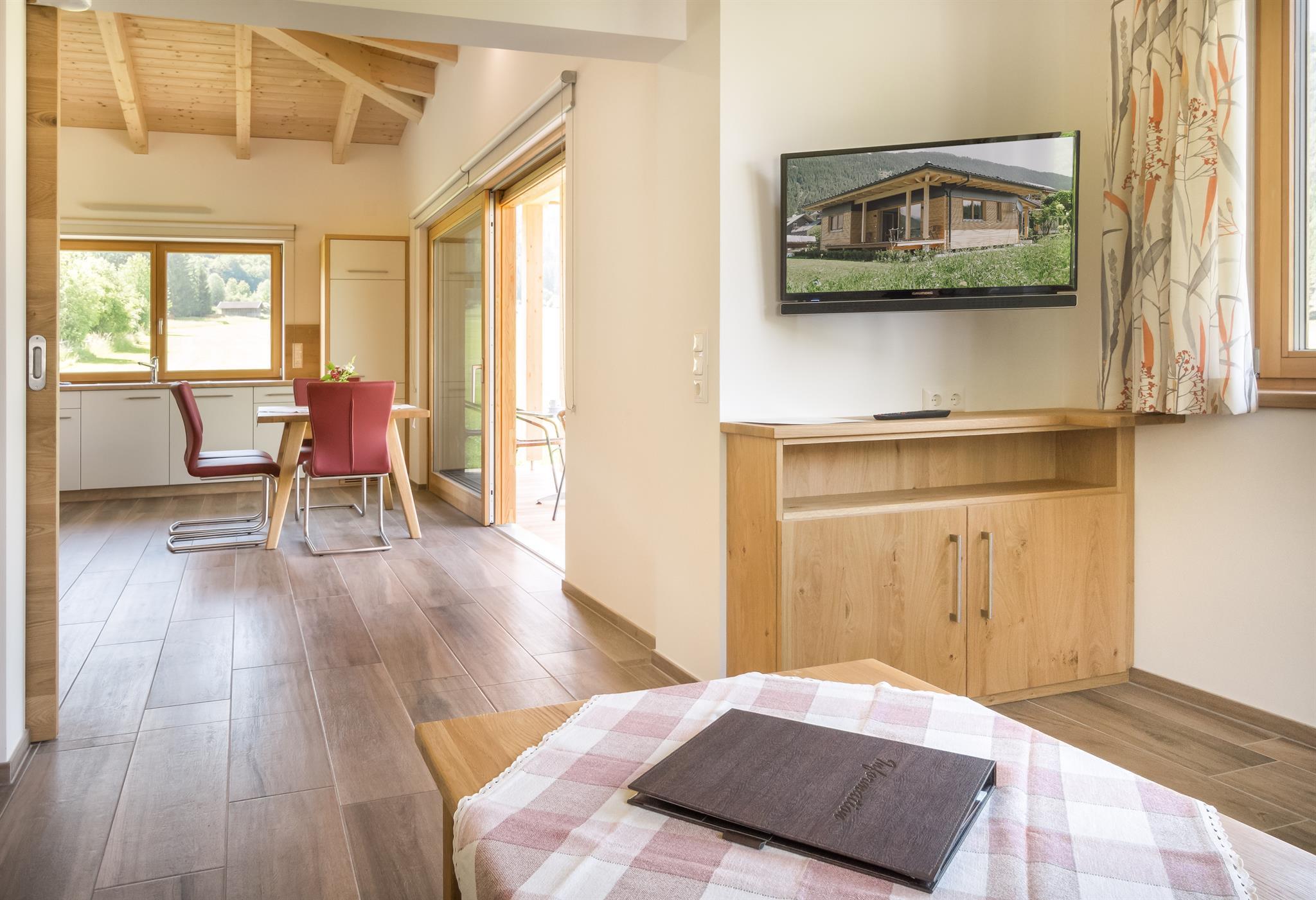 Zum Wohlfühlen eingerichtetes Ferienhaus mit 1 Schlafzimmer, ein Wohnschlafzimmer mit einer Doppelcouch zum ausziehen. Diese Doppelcouch besteht aus einem vollwertigen Bett mit Einsatz und Matratze. Eine Küche mit gemütlichen Esstisch und von dort kann man durch eine große Schiebetür auf die Veranda mit einem wunderbaren Seeblick gehen. Im Küchenbereich gibt es noch eine ebenso hochwertige Couch zum Ausziehen für eine fünfte Schlafgelegenheit. Dusche und WC sind räumlich getrennt und in der Dusche befindet sich eine Infrarotkabine. Der hauseigene Badestrand, eine große Spiel- und Liegewiese, Liegestühle und Sonnenschirme sowie Ruderboote stehen unseren Gästen kostenlos zur Verfügung. WLAN gratis, Parkplatz befindet sich direkt beim Haus.