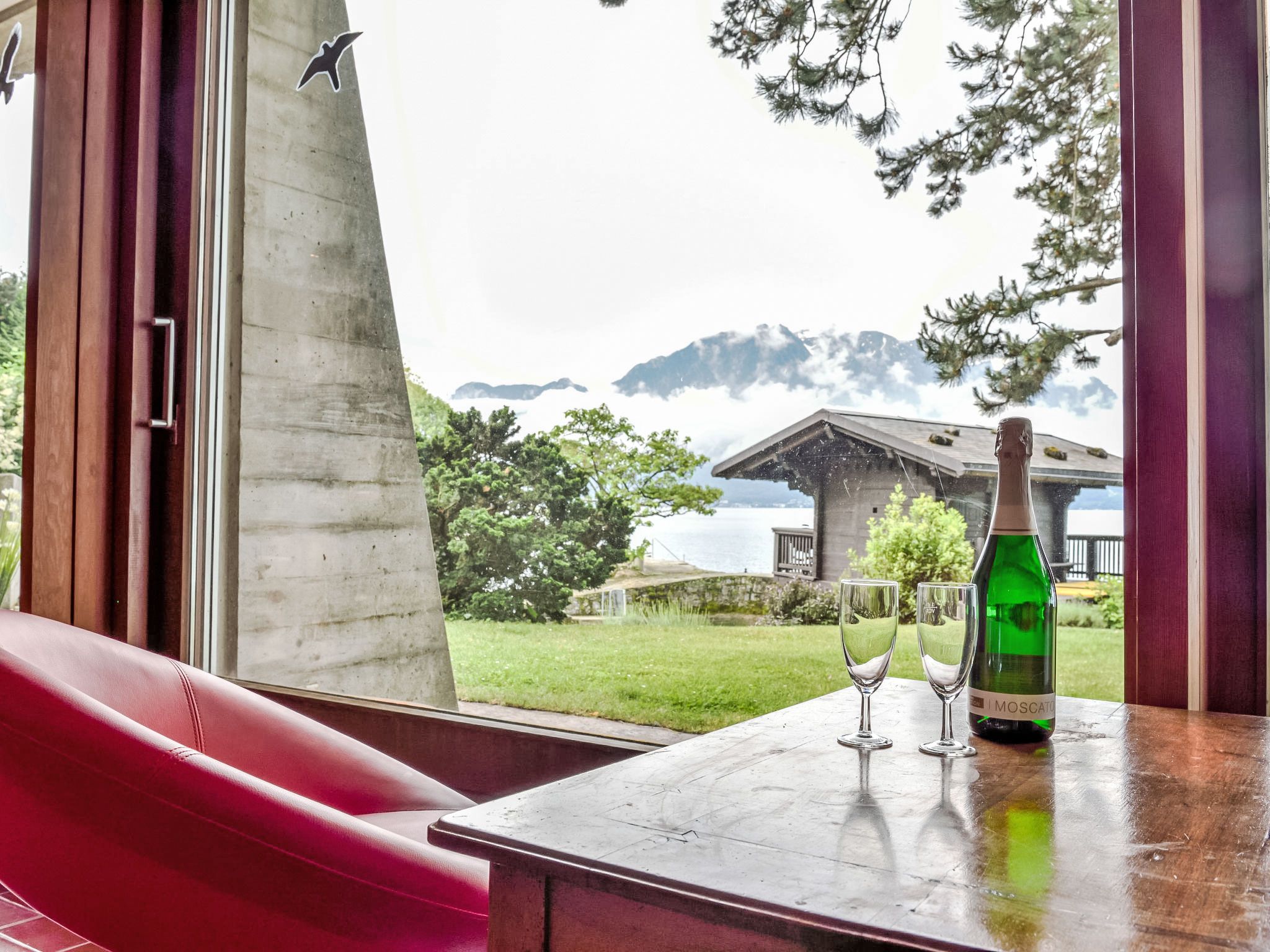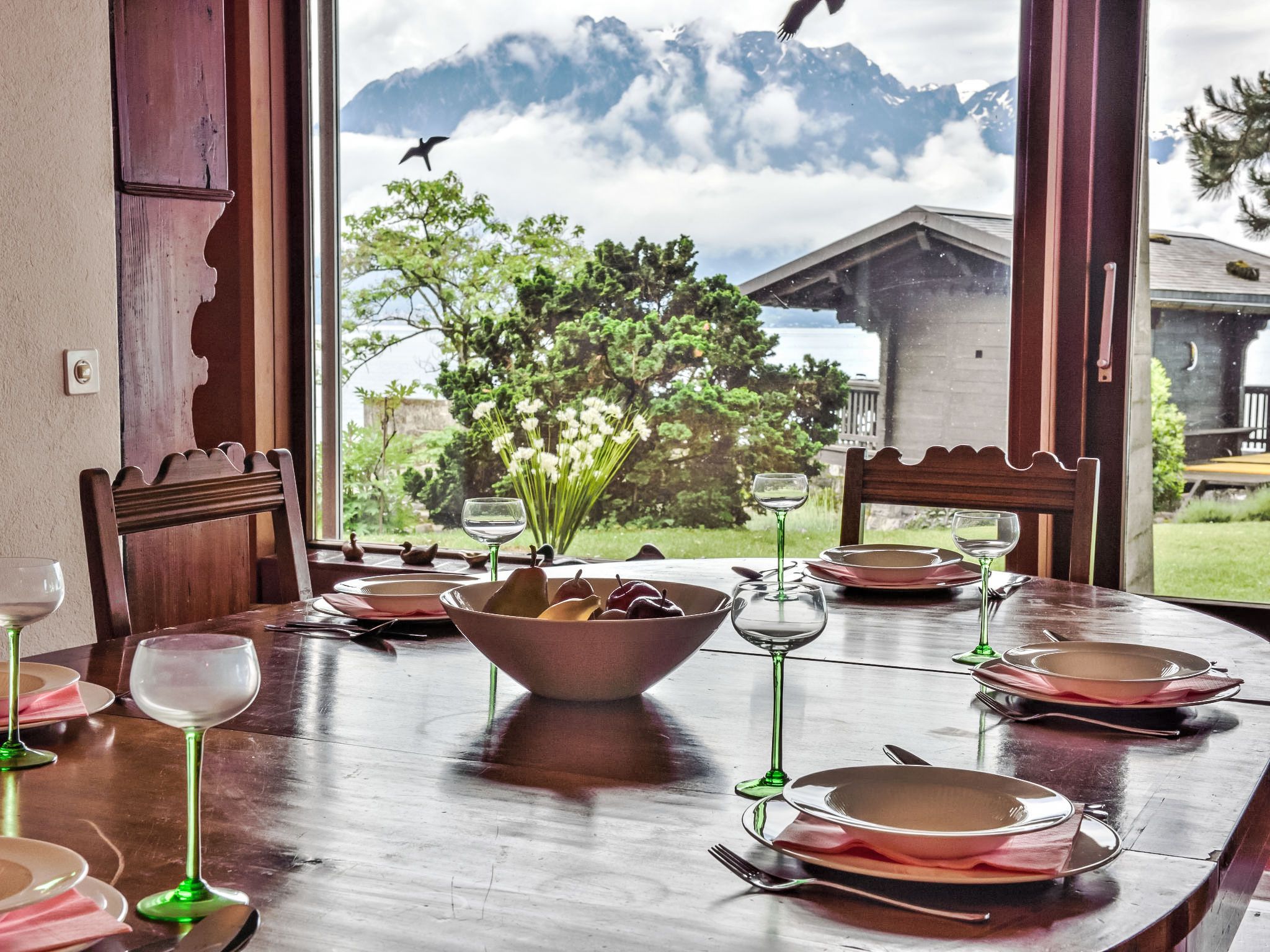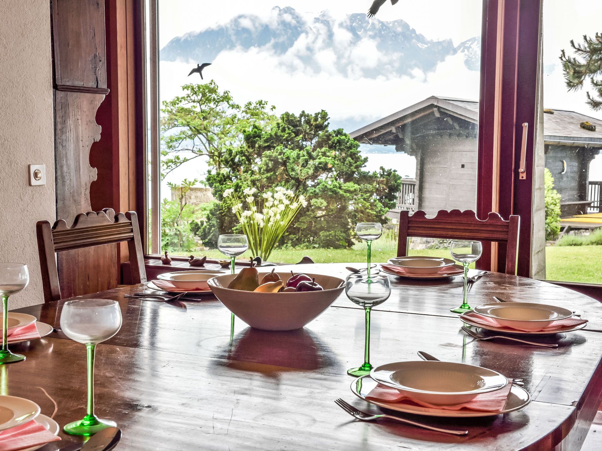 Duck House, 5-Zimmer-Villa 200 m2. Geräumig und hell, komfortabel und geschmackvoll eingerichtet: grosses Wohn-/Esszimmer 60 m2 mit offenem Kamin, Esstisch, Stereoanlage und elektrischem Rollladen. Ausgang zum Garten, zur Terrasse. 1 Zimmer 10 m2 mit 1 Doppelbett (1 x 160 cm, Länge 190 cm). Ausgang zur Terrasse. 1 Zimmer 10 m2 mit 1 Doppelbett (1 x 140 cm, Länge 190 cm). Ausgang zur Terrasse. 1 Zimmer 10 m2 mit 1 Doppelbett (1 x 140 cm, Länge 200 cm). Ausgang zur Terrasse. 1 Zimmer 20 m2 mit 2 Betten (90 cm, Länge 200 cm), Dusche/WC. Ausgang zur Terrasse. Küche (Backofen, Geschirrspüler, 4 Glaskeramikplatten, Toaster, Wasserkocher, Mikrowelle, Tiefkühler, elektrische Kaffeemaschine, Kapseln für die Kaffeemaschine (Nespresso) extra). Bad, sep. WC. E-Heizung. Grosser Garten, Südwestlage. Terrassenmöbel, Gartengrill (mobil), Liegestühle (5). Herrliche Sicht auf den See und die Berge. Zur Verfügung: Waschmaschine, Wäschetrockner, Bügeleisen, Kinderhochstuhl, Haartrockner. Internet (WLAN, gratis). Bitte beachten: Nichtraucher-Unterkunft. Private Bootsanlegestelle. Maximal 1 Haustier/Hund erlaubt. Dieses Familienhaus wurde von berühmten Künstlern wie Freddie Mercury bewohnt.