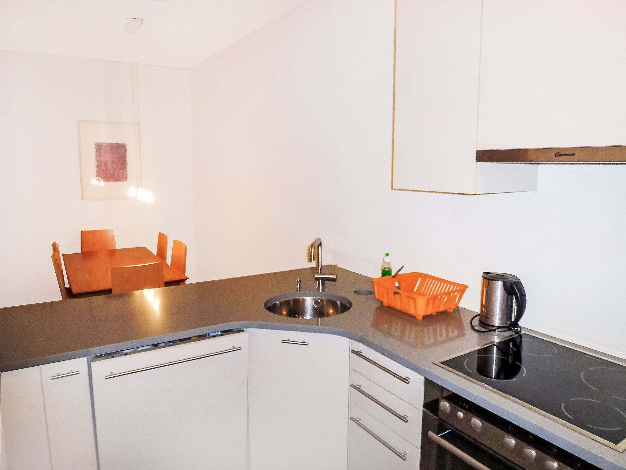 Residenza Monte Bré - Apt.105 Haus1, 3-Zimmer-Wohnung 61 m2, im Erdgeschoss. Schön und geschmackvoll eingerichtet: Wohn-/Esszimmer mit 2 Diwanbetten, Esstisch und Kabel-TV. Ausgang zum Balkon. 1 Doppelzimmer. 1 Zimmer mit 2 Betten. Offene Küche (4 Kochplatten, Backofen, Geschirrspüler). Dusche/WC. Balkon, Südlage und Westlage, Gartensitzplatz. Terrassenmöbel. Eingeschränkte Sicht auf die Berge. NL-