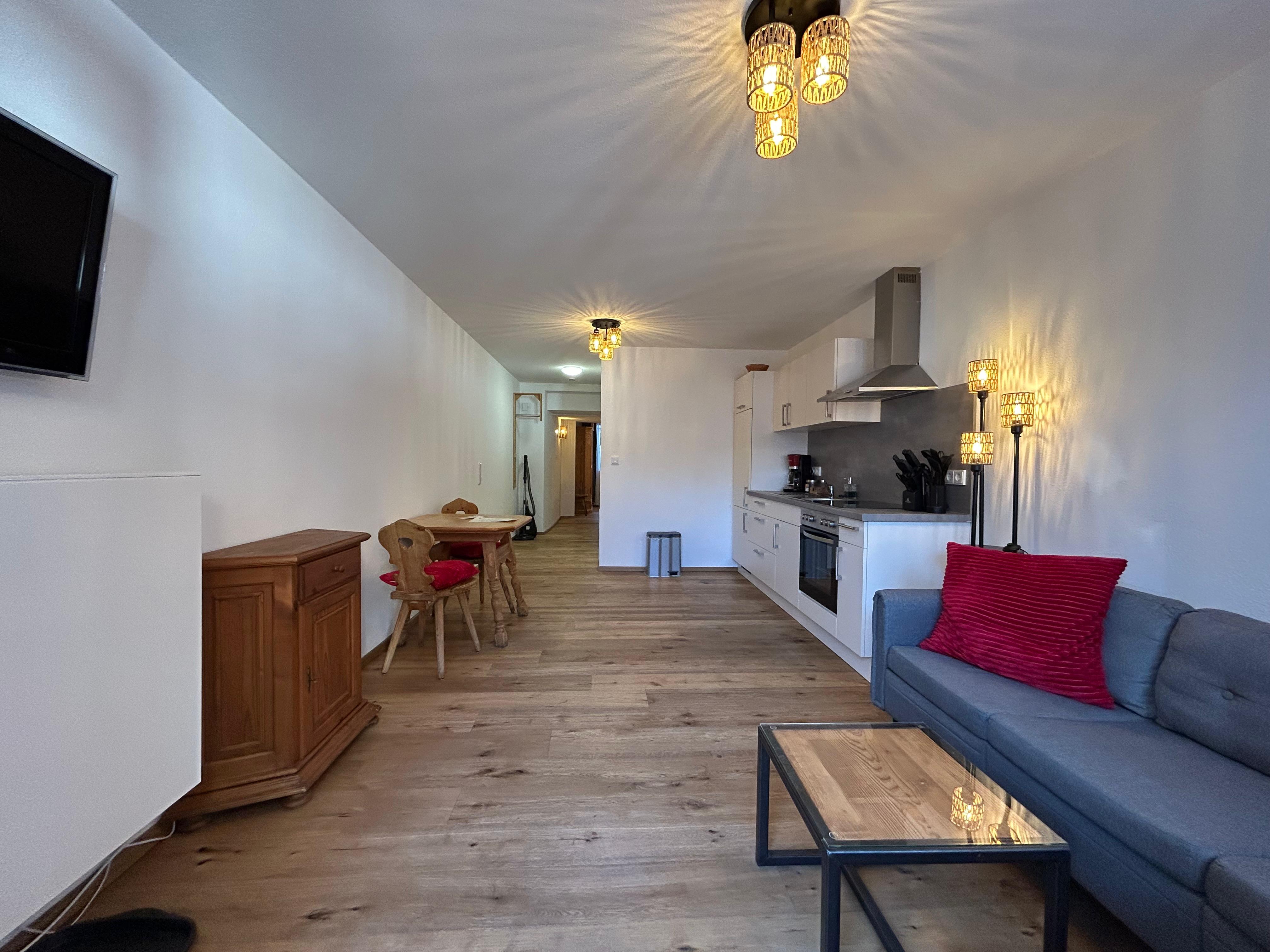 Diese Ferienwohnung für 2-4 Personen verfügt über ein zentral in der Wohnung gelegenen Wohnbereich mit integrierter Küche mit Essbereich und einem separaten Schlafzimmer. Sie verfügt über eine Küche mit Kühlschrank, Spülmaschine, Ceran-Herd, Wasserkocher, Toaster und Kaffeemaschine sowie ein Bad mit Dusche und WC.