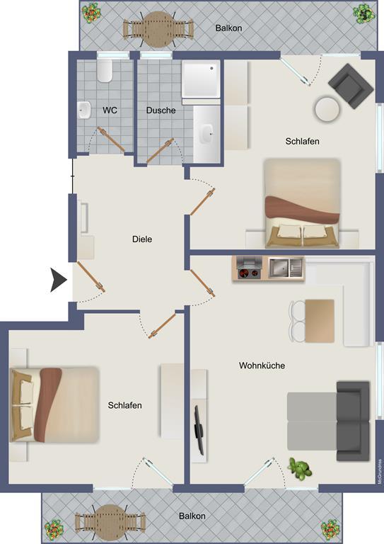 Alle Wohnungen sind mit Balkon ausgestattet.