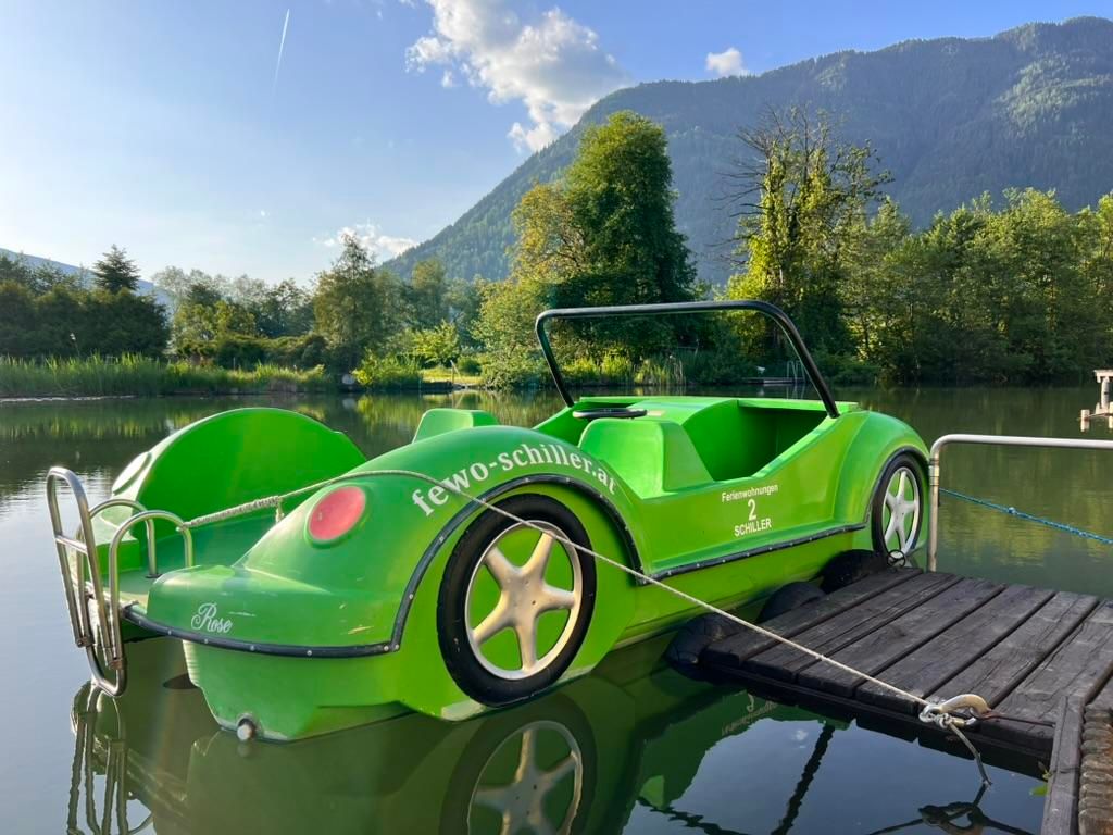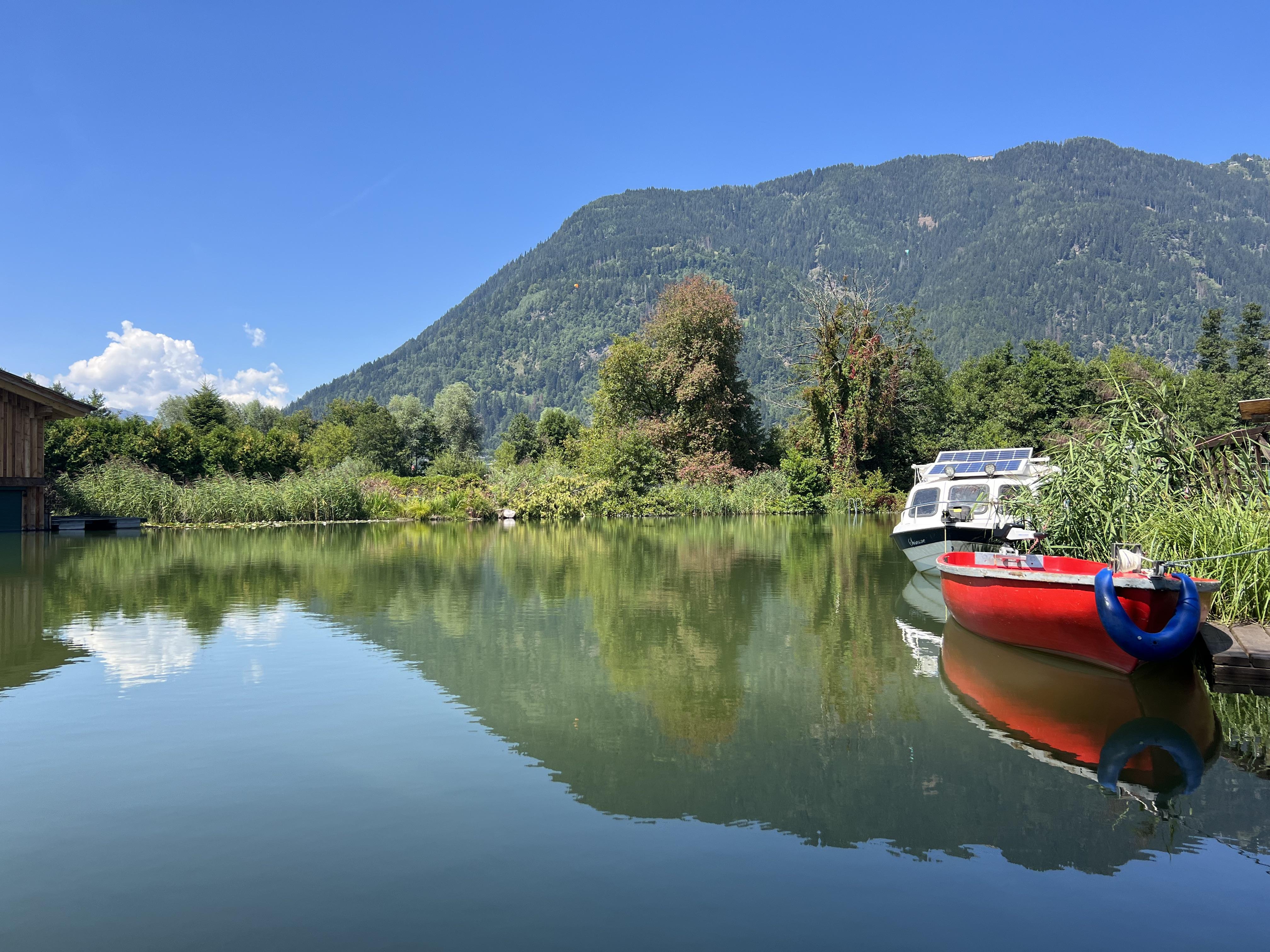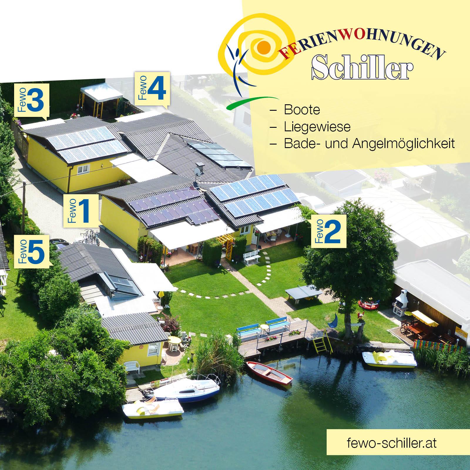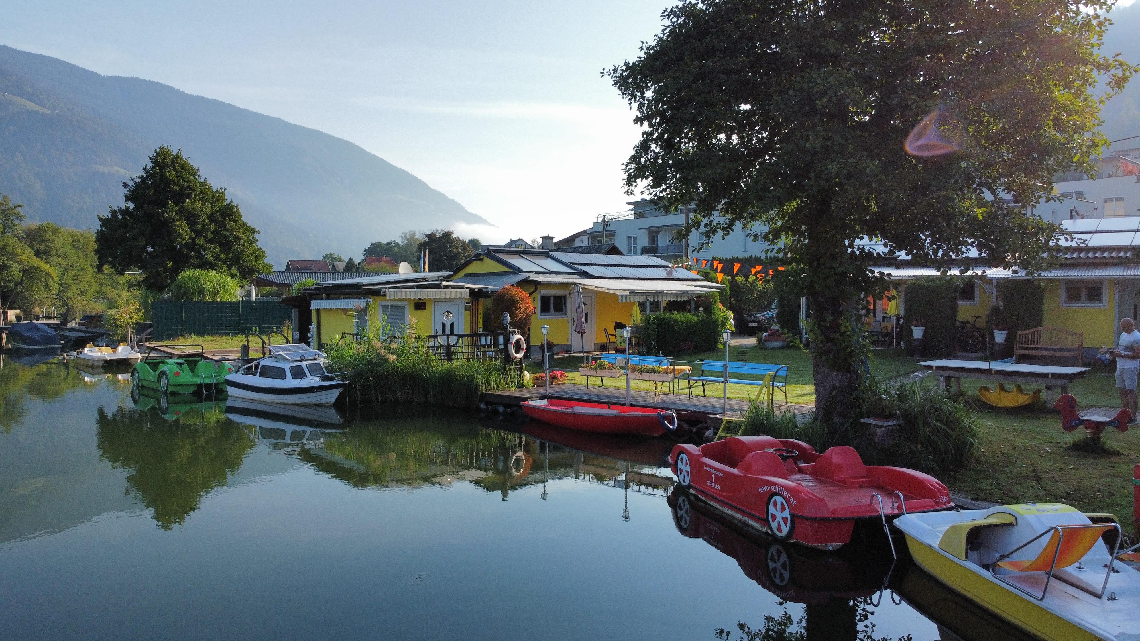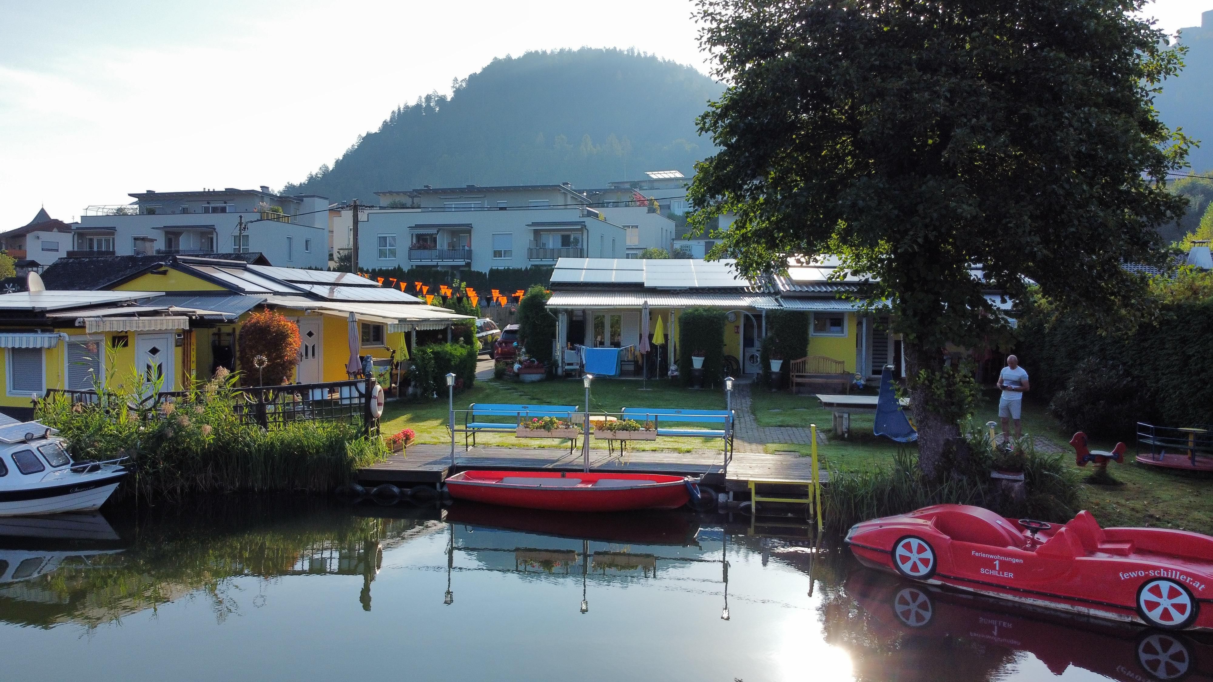 Erleben Sie Freiheit bei Ferienwohnungen Schiller! Umgeben von der faszinierenden Natur Österreichs, bieten die Ferienwohnungen Schiller in Landskron einen unvergesslichen Rückzugsort. Direkt an einem idyllischen Fluss gelegen, können Sie das klare Wasser und die grüne Wiesenlandschaft in vollen Zügen genießen. Hier erwartet Sie nicht nur ein eigener Badestrand, sondern auch die Möglichkeit, die hauseigenen Tretboote kostenlos zu nutzen!