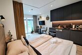 Die Ferienwohnung bietent luxuriöse Ausstattung, die höchsten Komfort garantiert. Erholen Sie sich im stilvoll eingerichteten Apartment mit bequemen Doppelbett, Bad und mit einem Smart-TV. Die Küchenzeile lädt zum Kochen ein und lässt keine Wünsche offen.