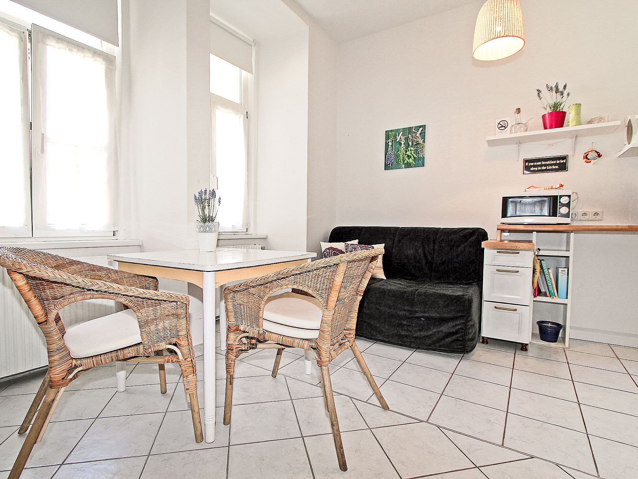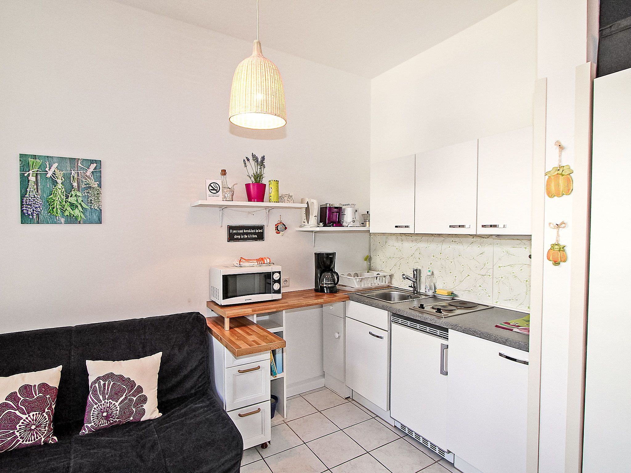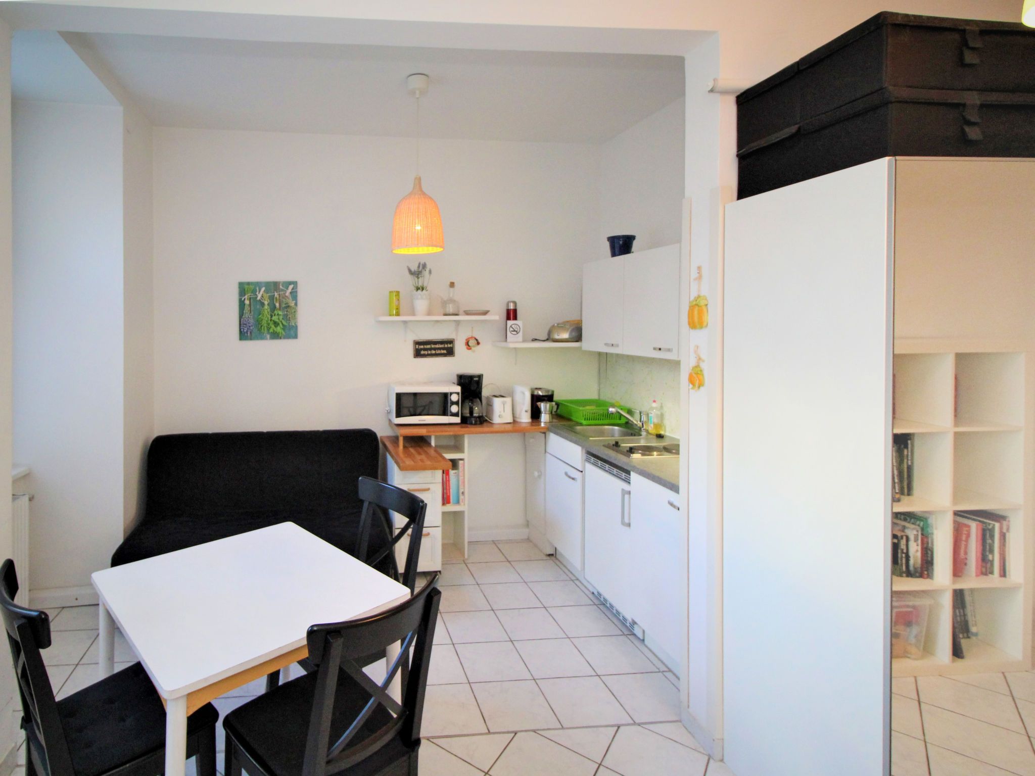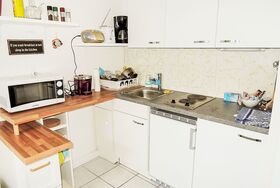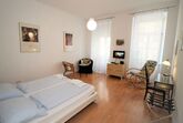 2-Zimmer-Wohnung 40 m2 im 2. Stock. Geschmackvoll und gemütlich eingerichtet: Wohn-/Schlafzimmer mit 1 Doppelbett (180 cm), TV (Flachbildschirm). Offene Küche (2 Kochplatten, Mikrowelle, elektrische Kaffeemaschine) mit Esstisch, 1 Klappbett (140 cm), Radio und CD. Dusche/WC. Heizung. Zur Verfügung: Bügeleisen, Haartrockner. Internet (WLAN, gratis). Bitte beachten: geeignet für Familien. Nichtraucher-Unterkunft.