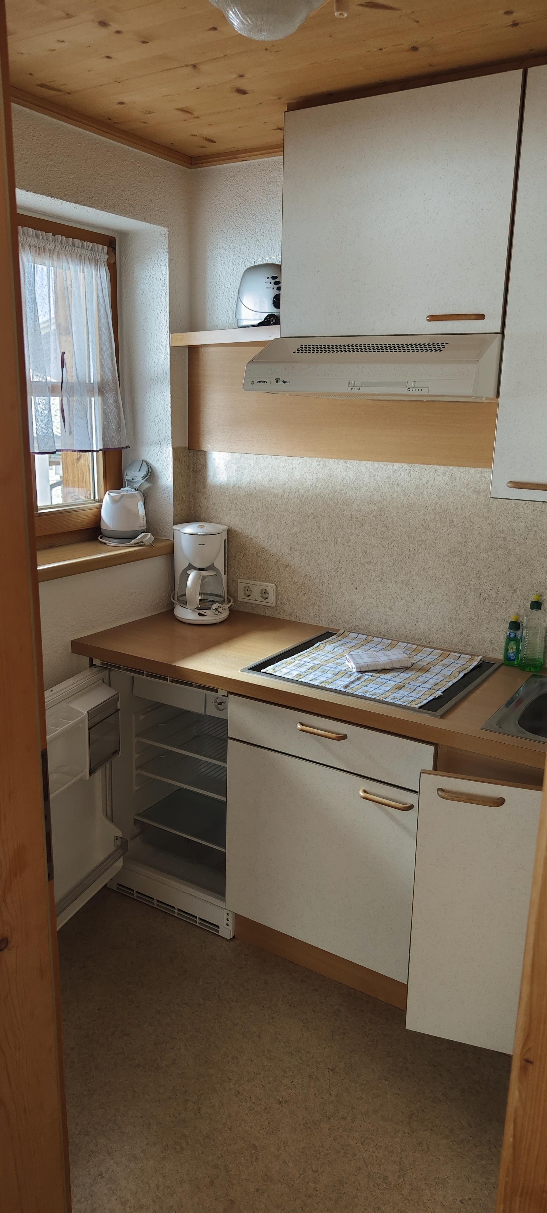 Unsere Ferienwohnung Nr. 2 (ca. 35 m²) besteht aus einem Doppelzimmer, einem Badezimmer mit Dusche/WC und einer voll ausgestatteten Wohnküche (Mikrowelle, kleinem Backofen, Kühlschrank/Gefrierfach, Herdplatte, Filter-Kaffeemaschine, Wasserkocher uvm.). Das einzigartige Panorama kann auf dem möblierten Balkon genossen werden.