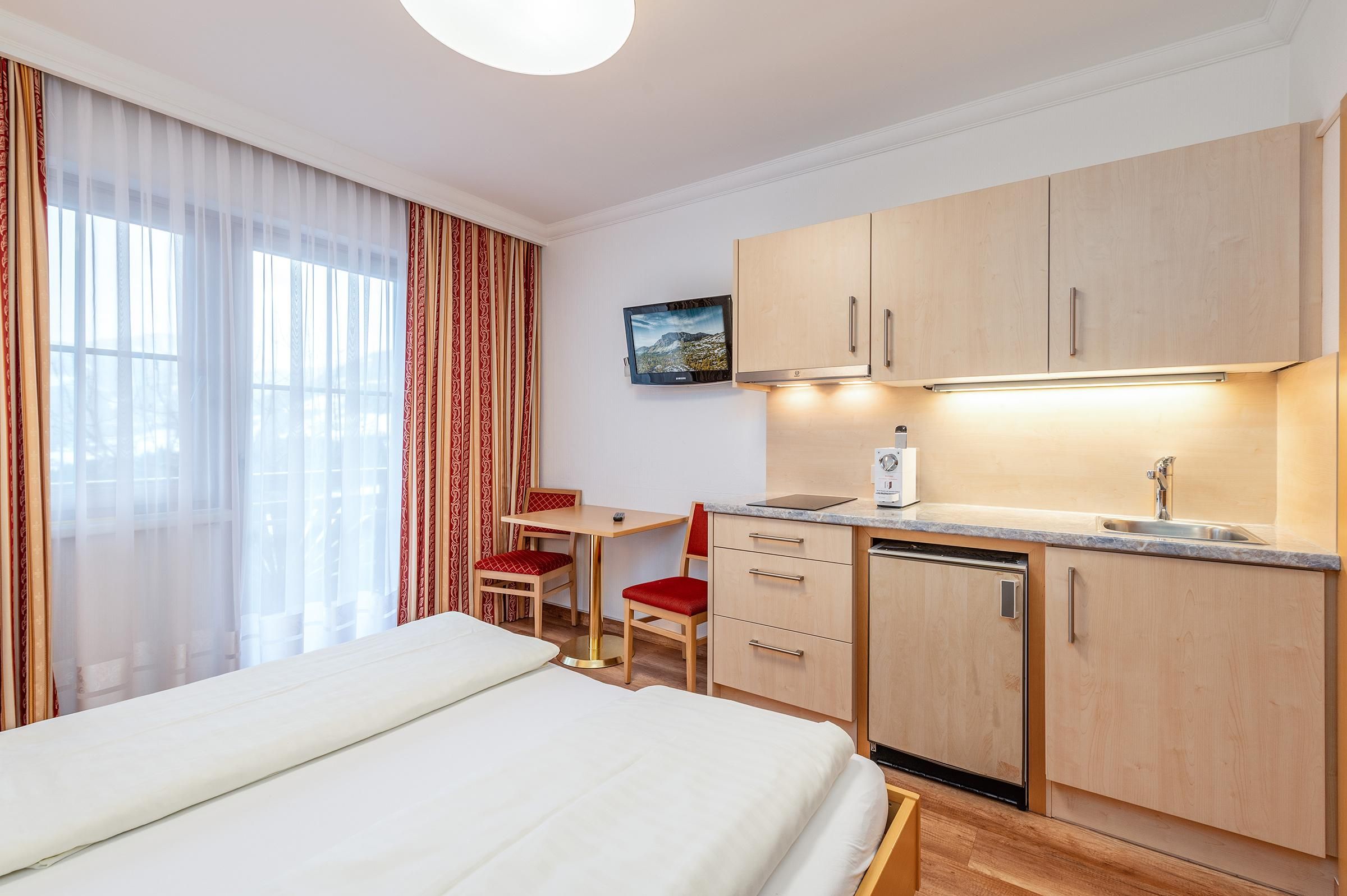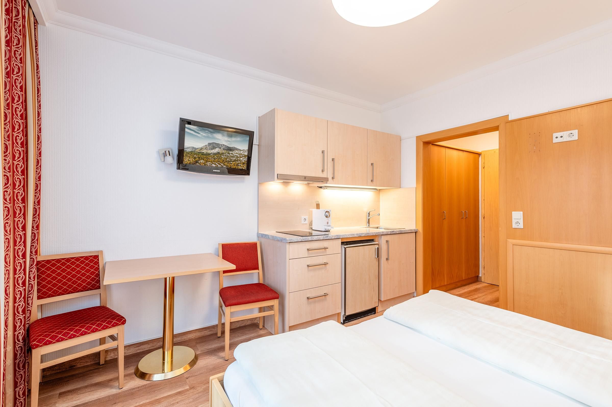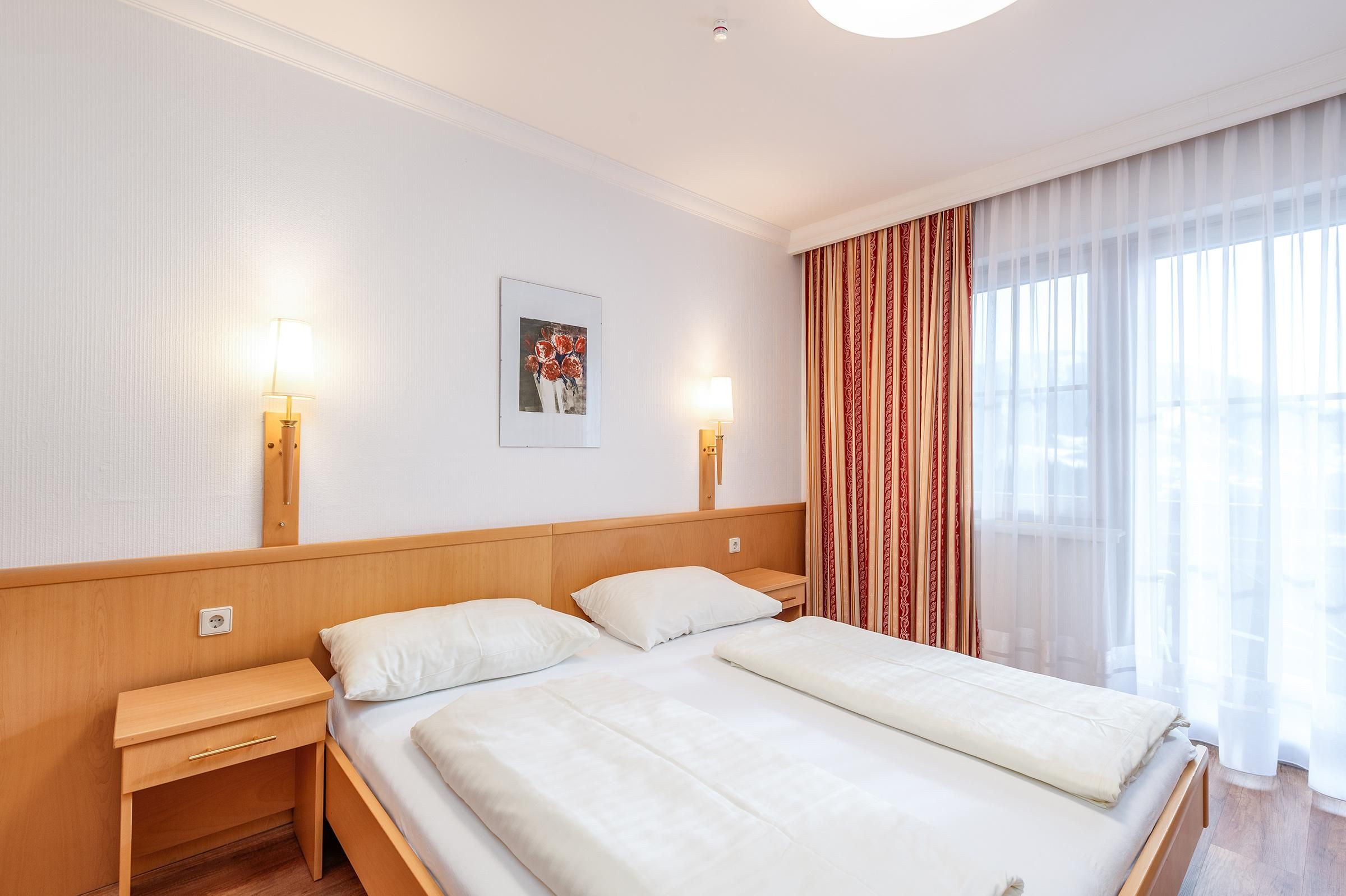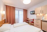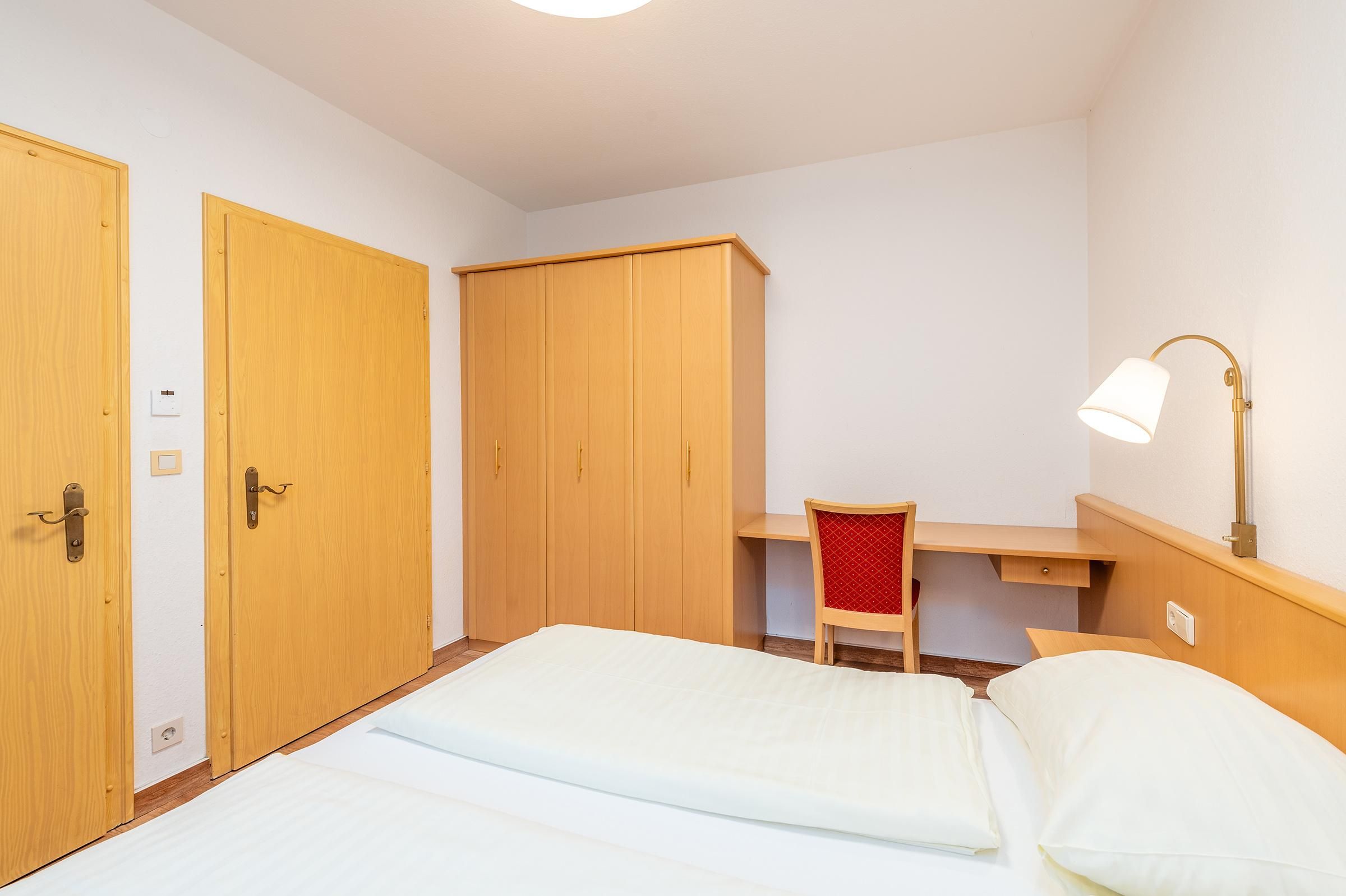 • Frühstück im angrenzenden Restaurant: Das Frühstück ist inbegriffen bei allen Buchungen im Einzelzimmer (EZ), Doppelzimmer (DZ), 3-Bett-Zimmer (3BZ) und 4-Bett-Zimmer (4BZ). Bei Aufenthalt in einem Apartment ist das Frühstück im Voraus oder vor Ort um 15€ zubuchbar – Details erhalten Sie mit Ihrer Buchungsbestätigung. À-la-carte-Abendessen ebenfalls möglich.
