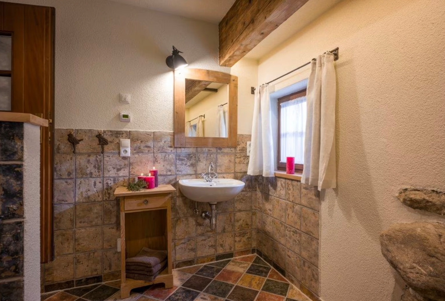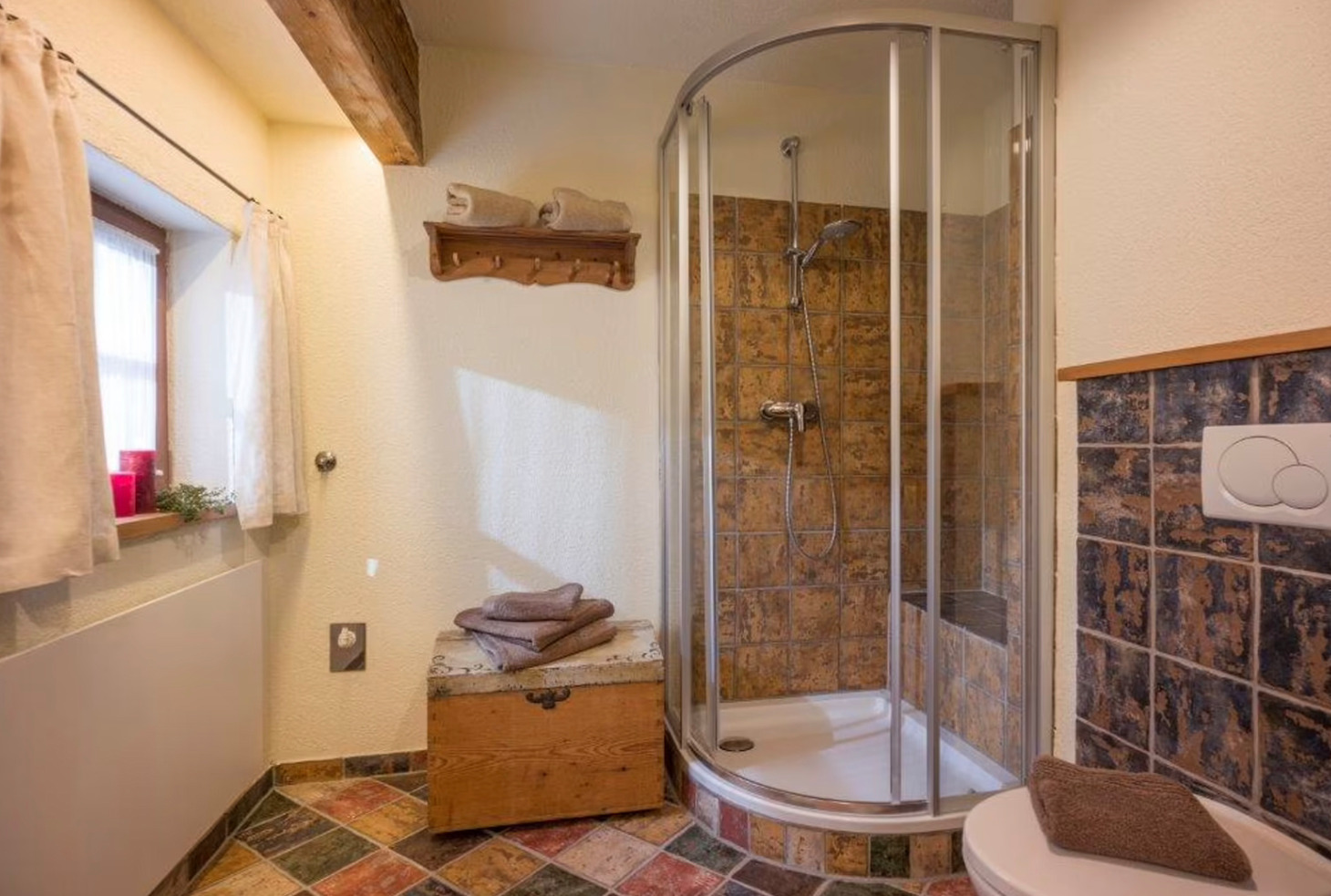 Das urige und liebevoll eingerichtete Chalet Unterleming liegt ruhig und idyllisch auf einer Seehöhe von 650 Meter am Angerberg in der Region Kufstein. Das Chalet bezaubert durch die ursprüngliche bäuerliche Ausstattung mit hundert Jahre alten Holzbalken und massiven Deckenträgern. In der originalen Bauernstube können Sie gemütliche, entspannte Stunden verbringen. Aufgrund des Bestandes an alter Bausubstanz im Erdgeschoss des Chalet hat man bei der seinerzeitigen Sanierung entschieden, zwei Türen im Originalzustand zu belassen. Die Höhe der beiden Türen unterschreiten somit die Normhöhe. Der Charme des Häuschens blieb somit erhalten. Die Ortschaften Maria Stein und Angerberg sind nur 2–3 km entfernt, hier finden Sie Einkaufsmöglichkeiten sowie Restaurants, Cafés und kleinere Geschäfte. Das Chalet ist ganzjährig mit dem PKW erreichbar. Haustiere sind herzlich willkommen.