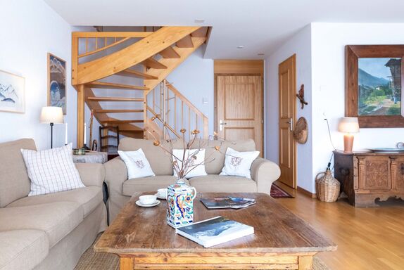Matin Calme A2, 3-Zimmer-Wohnung 99 m2 auf 2 Stockwerken, im Erdgeschoss, Südwestlage. Zweckmässig und komfortabel eingerichtet: Wohn-/Esszimmer mit offenem Kamin, Esstisch und TV (Flachbildschirm). Ausgang zum Garten, Richtung Süden und Richtung Südwesten. Offene Küche (Backofen, Geschirrspüler, 4 Glaskeramikplatten, Toaster, Wasserkocher, Tiefkühler, elektrische Kaffeemaschine, Kapseln für die Kaffeemaschine (Nespresso) extra, Racletteofen, Fondue Set (Käse)). Sep. WC. Obergeschoss: 1 Zimmer mit 1 franz. Bett (1 x 160 cm, Länge 200 cm). Ausgang zum Balkon, Richtung Südwesten. 1 Zimmer mit 1 franz. Bett (1 x 160 cm, Länge 200 cm). Ausgang zum Balkon, Richtung Südwesten. Bad/WC. Balkon, Südwestlage, Garten, Südwestlage. Balkonmöbel. Sehr schöne Sicht. Zur Verfügung: Waschmaschine, Wäschetrockner, Bügeleisen, Haartrockner. Internet (Wireless LAN, gratis). Garage Nr. 5 (1 Auto). Bitte beachten: Nichtraucher-Unterkunft, Parkplatz nur für kleine Wagen.