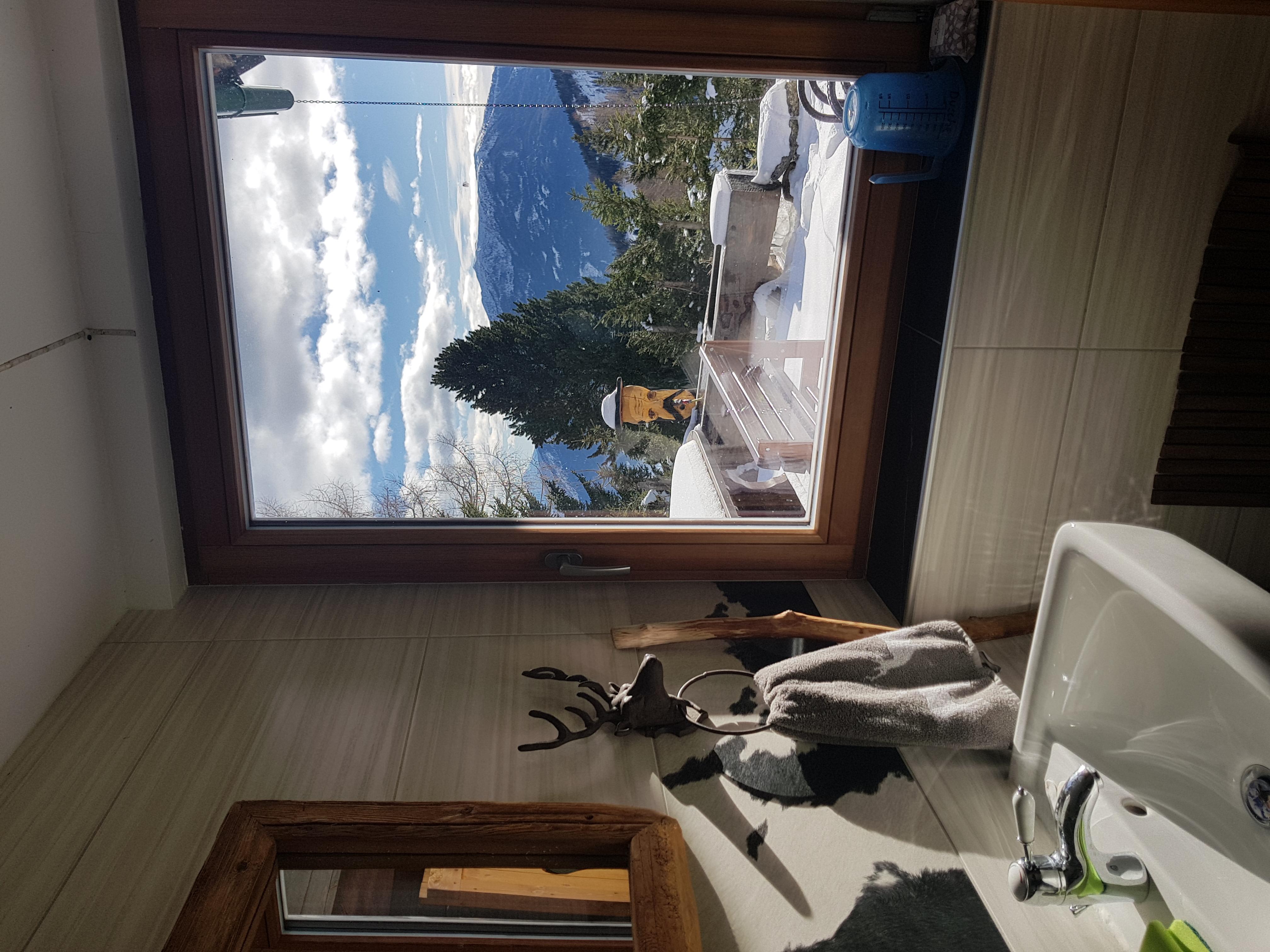 - Dusche Deluxe mit Aussicht (Kuhfellfliesen)