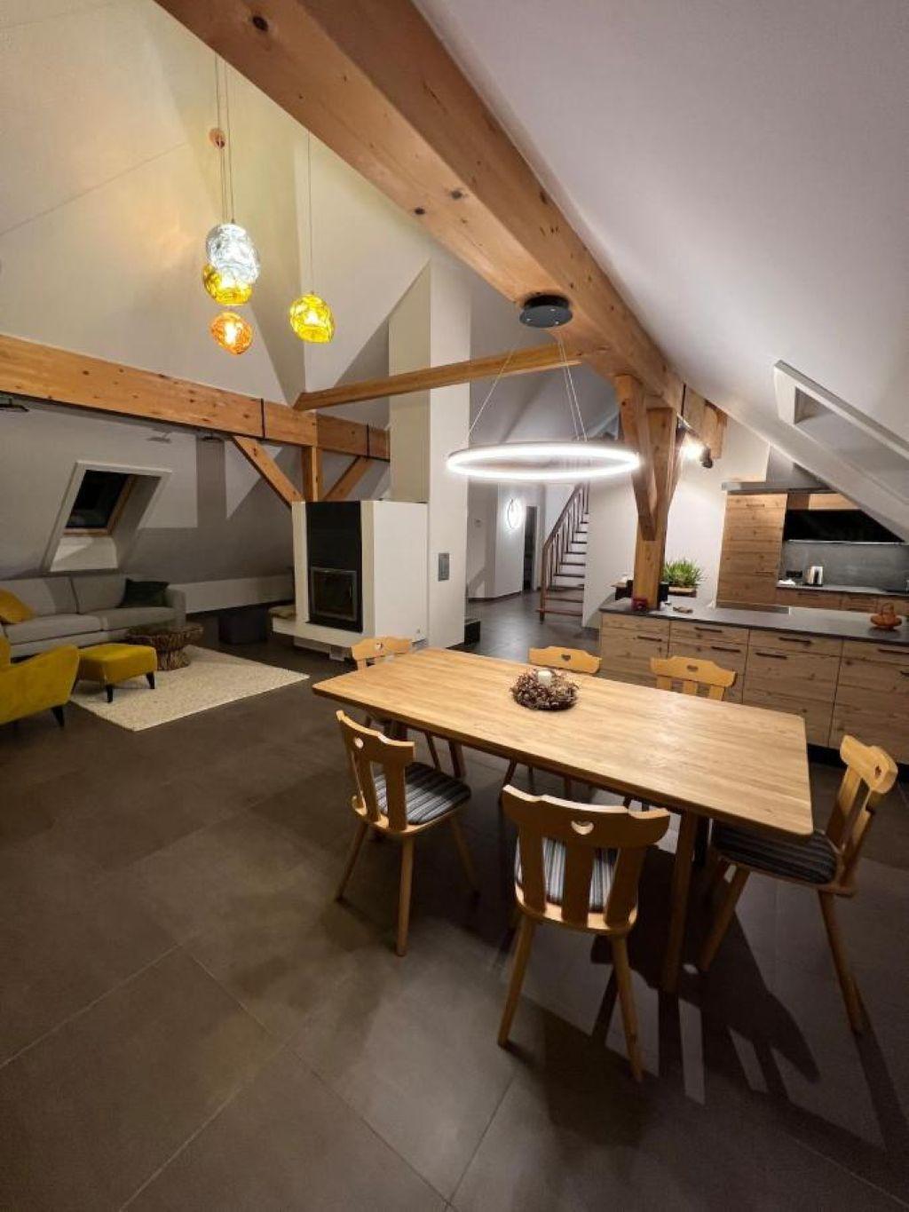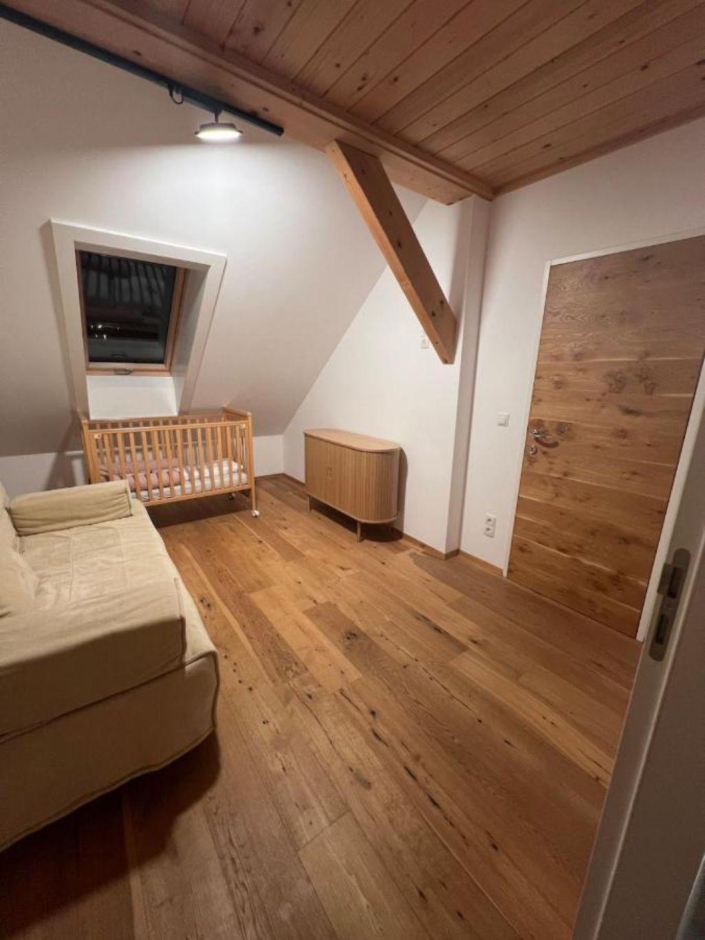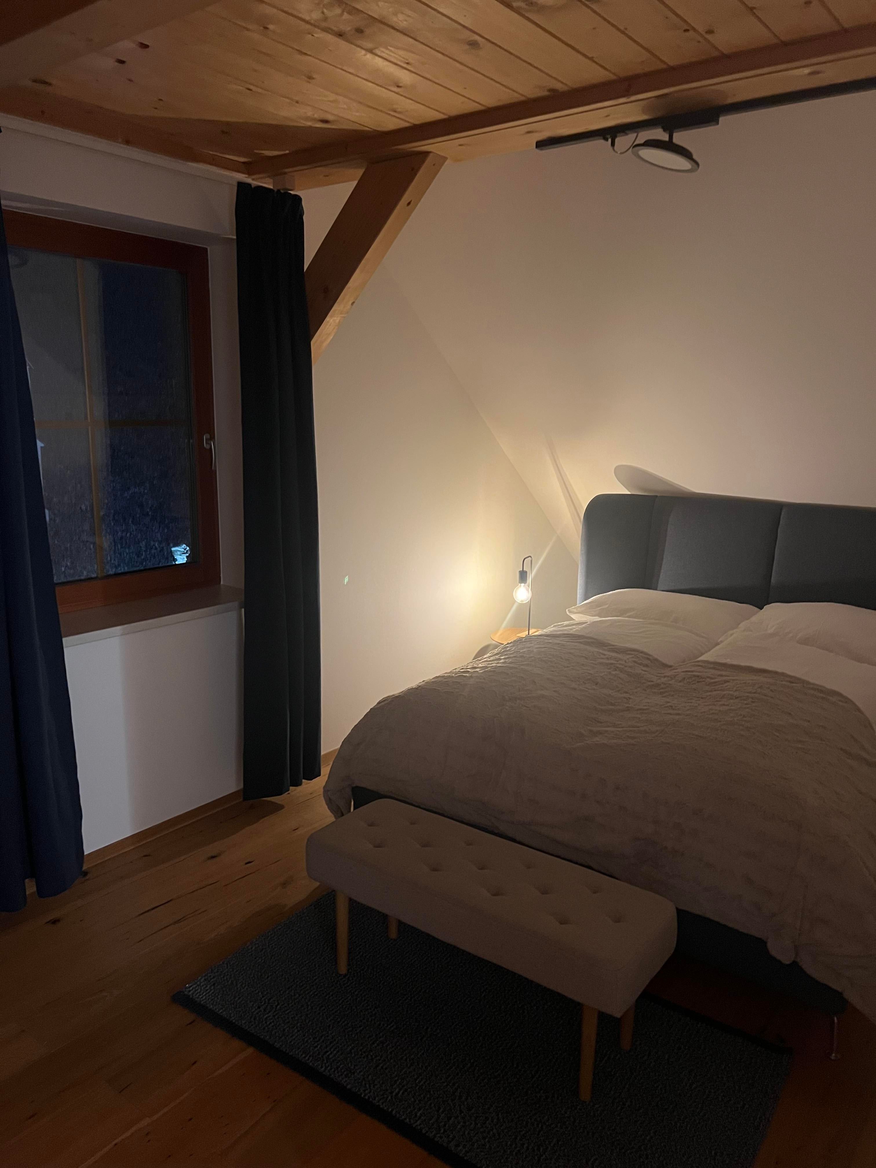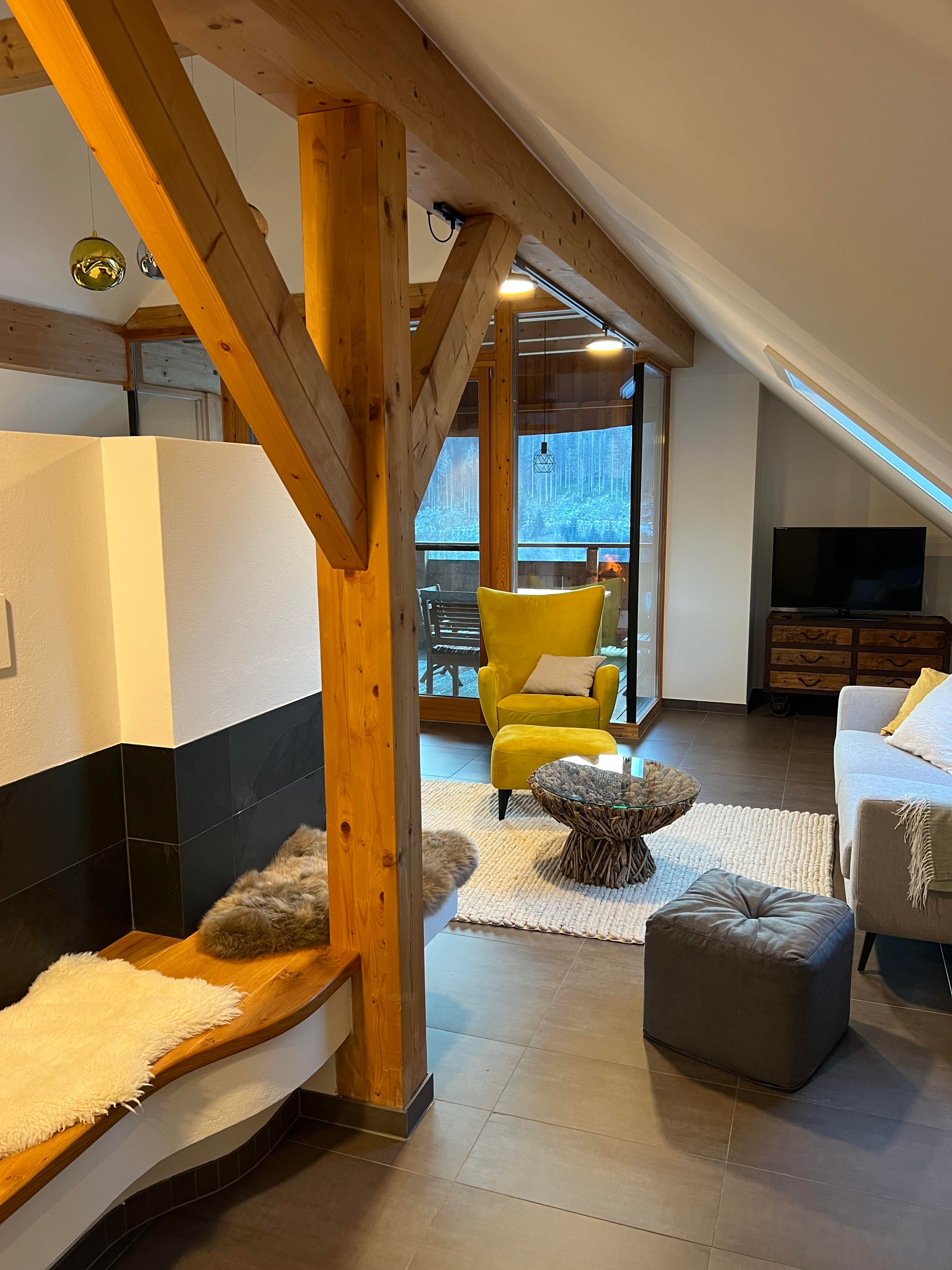 Deine Wohnung im Überblick – dein Kraftort zum Sein, Atmen & Auftanken Geräumigkeit & Ausstattung: Diese großzügige, lichtdurchflutete Dachgeschosswohnung befindet sich in einem über 300 Jahre alten, liebevoll restaurierten Haus. Sie bietet Platz für bis zu 6 Personen – mit vier Schlafzimmern (drei Doppelbetten, einer Doppel-Schlafcouch und einem Gitterbett), einer voll ausgestatteten Küche, Wohnzimmer, zwei Toiletten, Loggia und einer offenen Galerie. Das Bad verfügt über Dusche, Badewanne und Doppelwaschtisch.