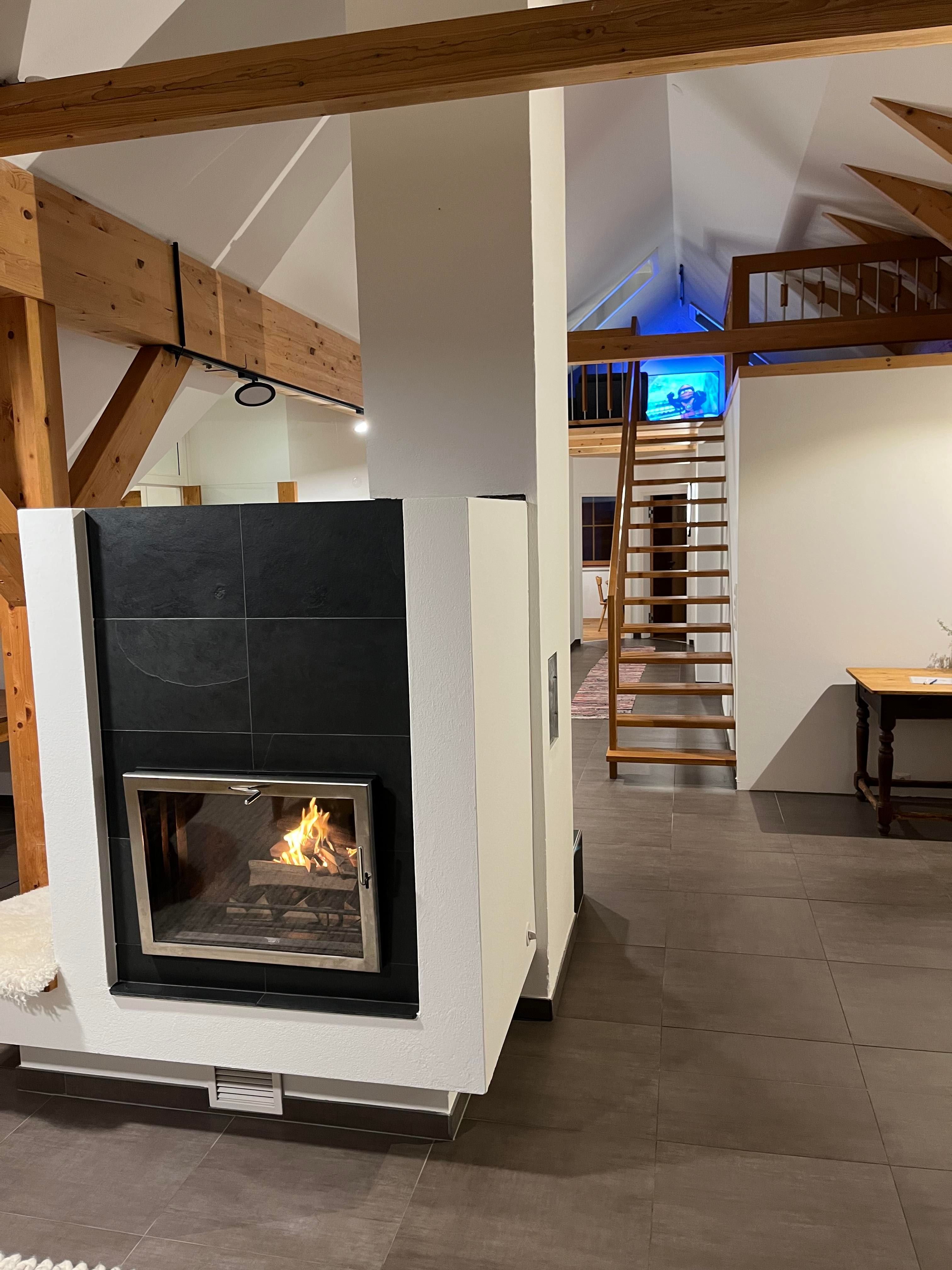 Wärme & Gemütlichkeit: Ein zentraler Kachelofen mit Glasfenster sorgt für wohlige Wärme und schafft eine ruhige, einladende Atmosphäre – ideal zum Lesen, Meditieren oder Zusammensitzen. Brennholz ist inklusive. Die Fußbodenheizung sorgt für sanfte, gleichmäßige Wärme.