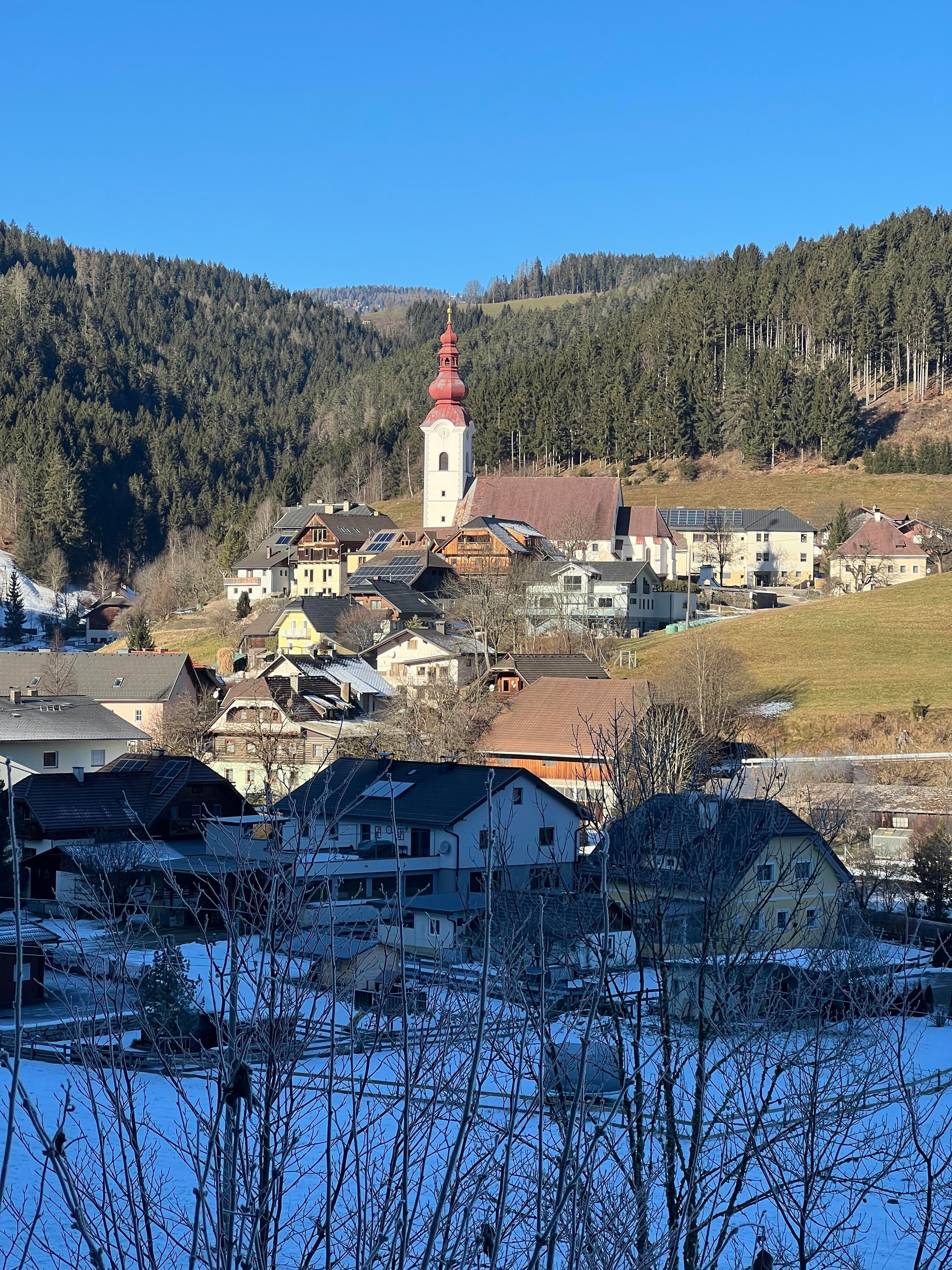 Lage & Umgebung – Natur erleben, Klarheit finden Gelegen in einer verkehrsarmen, naturnahen Gegend – direkt neben der Kirche von Sirnitz. In wenigen Minuten erreichst du plätschernde Bäche, Wiesen, Wälder, einen Naturbadeteich, Spielplätze und weite Spazierwege.
