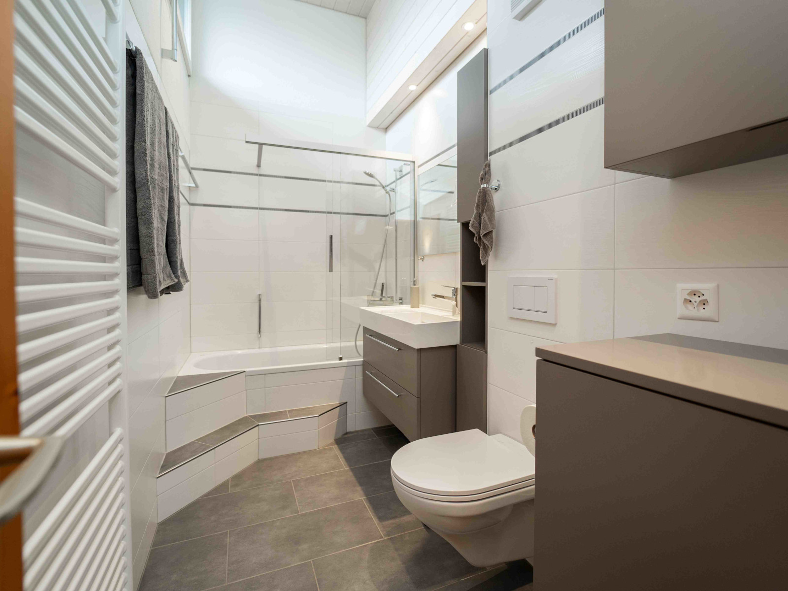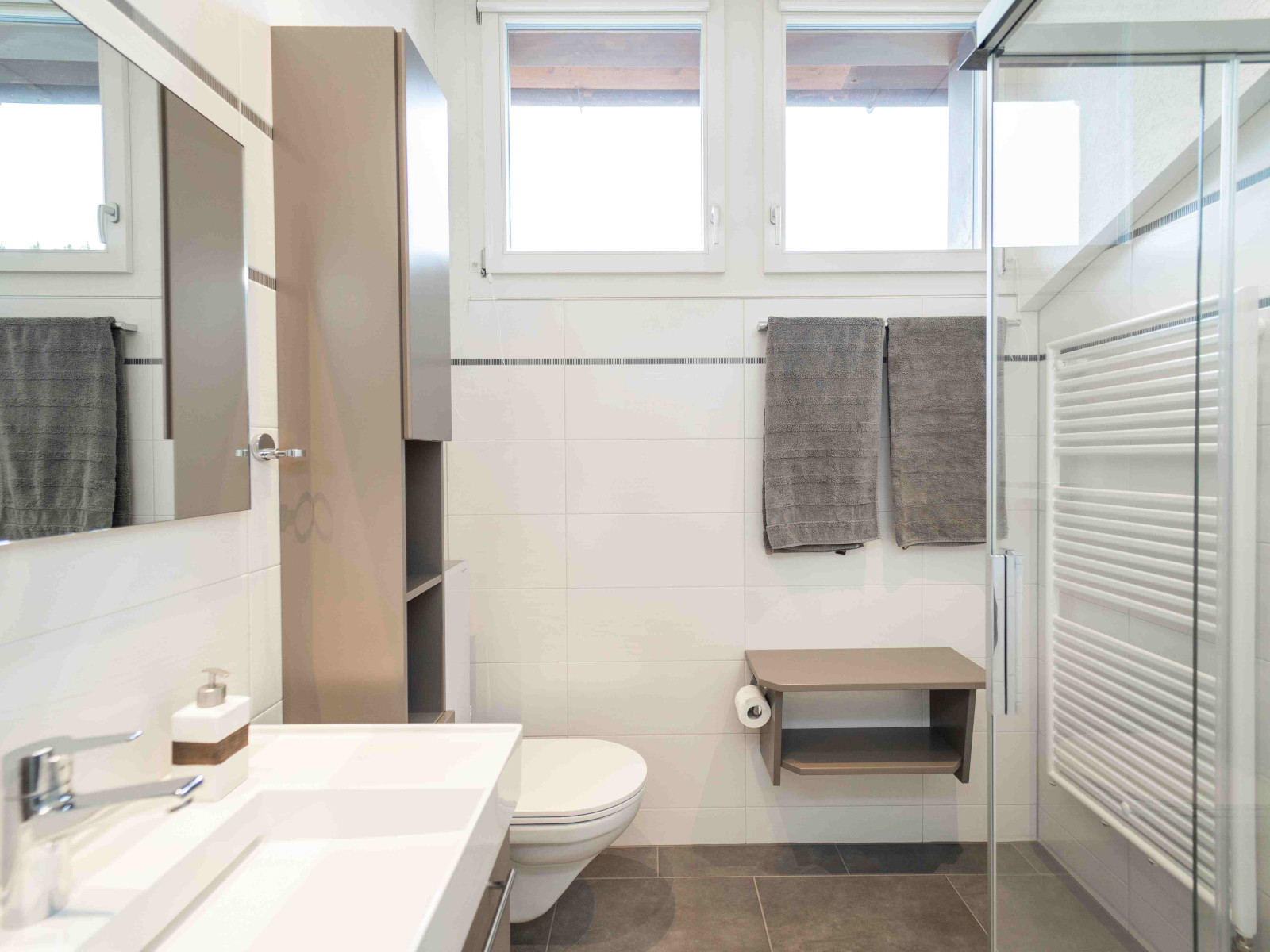 2 Badezimmer: ein Badezimmer mit Dusche und WC, ein Badezimmer mit Badewanne und WC (Ensuite vom Elternschlafzimmer), Föhn vorhanden
