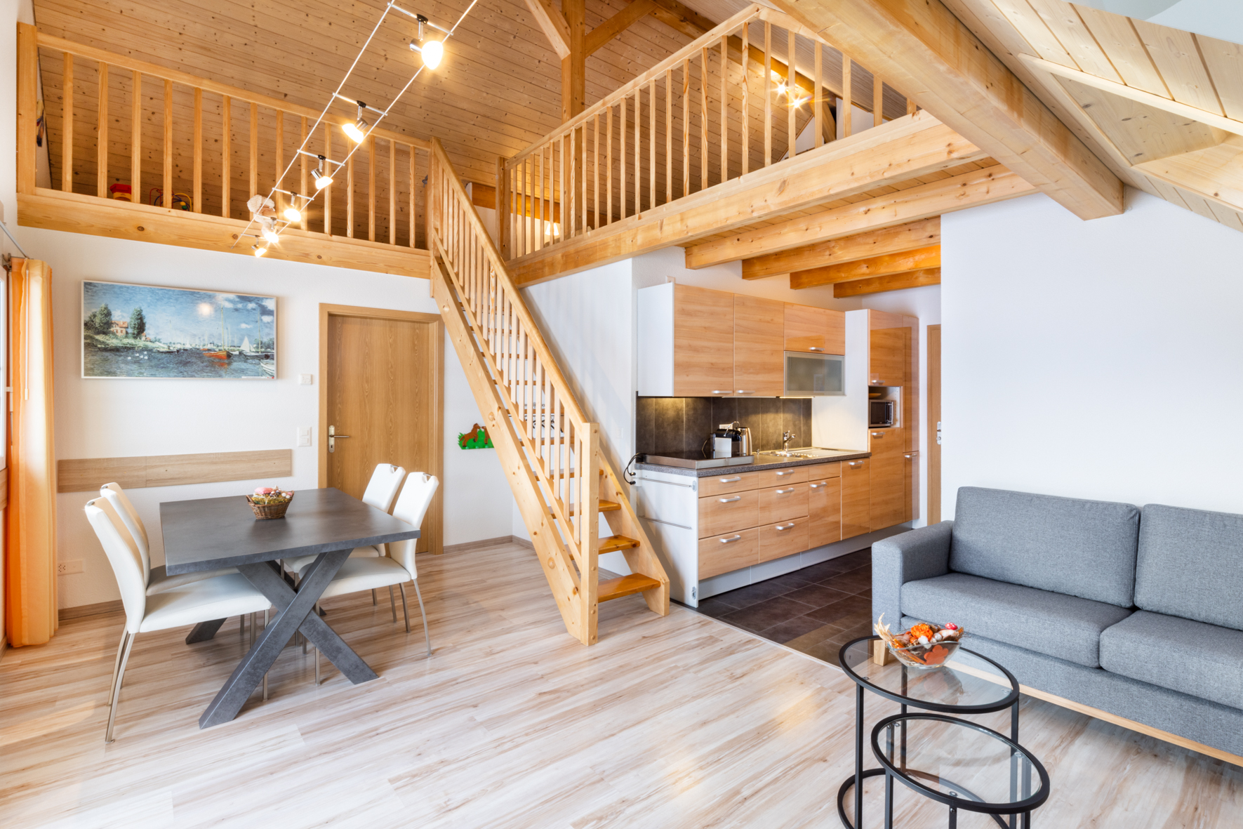 Charmante 3,5 Zimmer Ferienwohnung direkt am Sihlsee. Ein Doppelzimmer mit Balkon und eine offenen Galerie mit drei Betten bilden die beiden Schlafräume. Zusätzlich kann ein Kinderbett bereitgestellt werden. Dusche/WC mit Haartrockner auf der Etage. Moderne Wohnküche mit Kochherd, Kühlschrank, Tiefkühler, Toaster und Wasserkocher. Wäscheraum mit Waschmaschine und Trockner. Gartensitzplatz mit traumhafter Aussicht auf den Sihlsee.