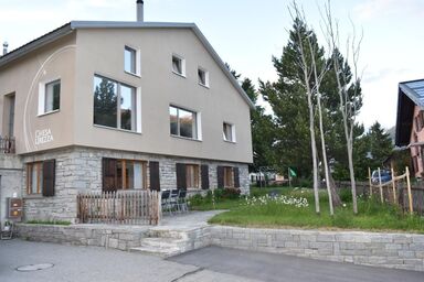 Die gemütlich eingerichtete 3.5-Zimmer-Wohnung (63m²) befindet sich im Souterrain der Liegenschaft Chesa Fischer. Die Wohnung bietet Platz für 4 Personen. Benutzung des reservierten Parkplatzes / Skiraum / Velo-Abstellplatz sowie WLAN-Zugang gehören zur Wohnungsmiete.