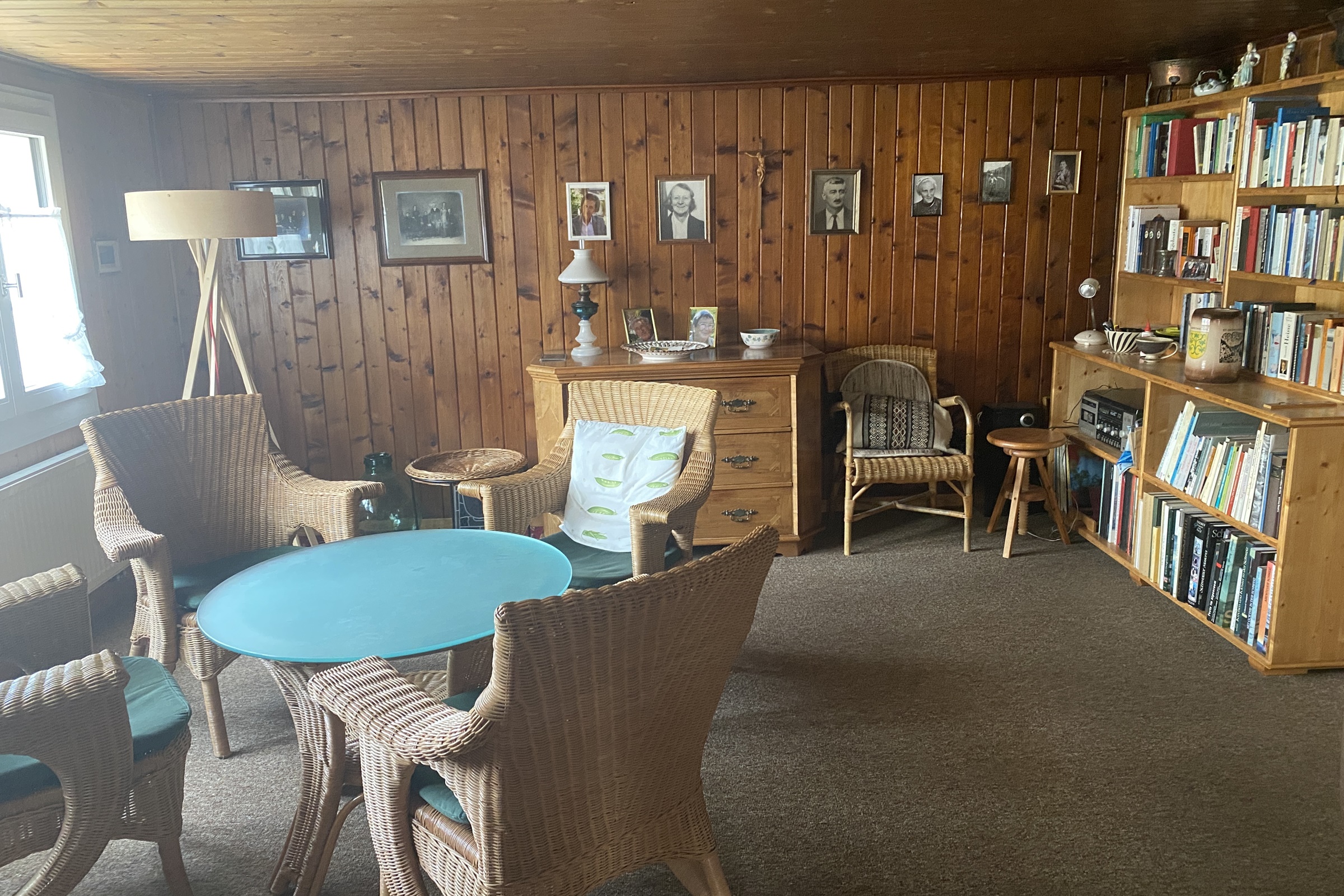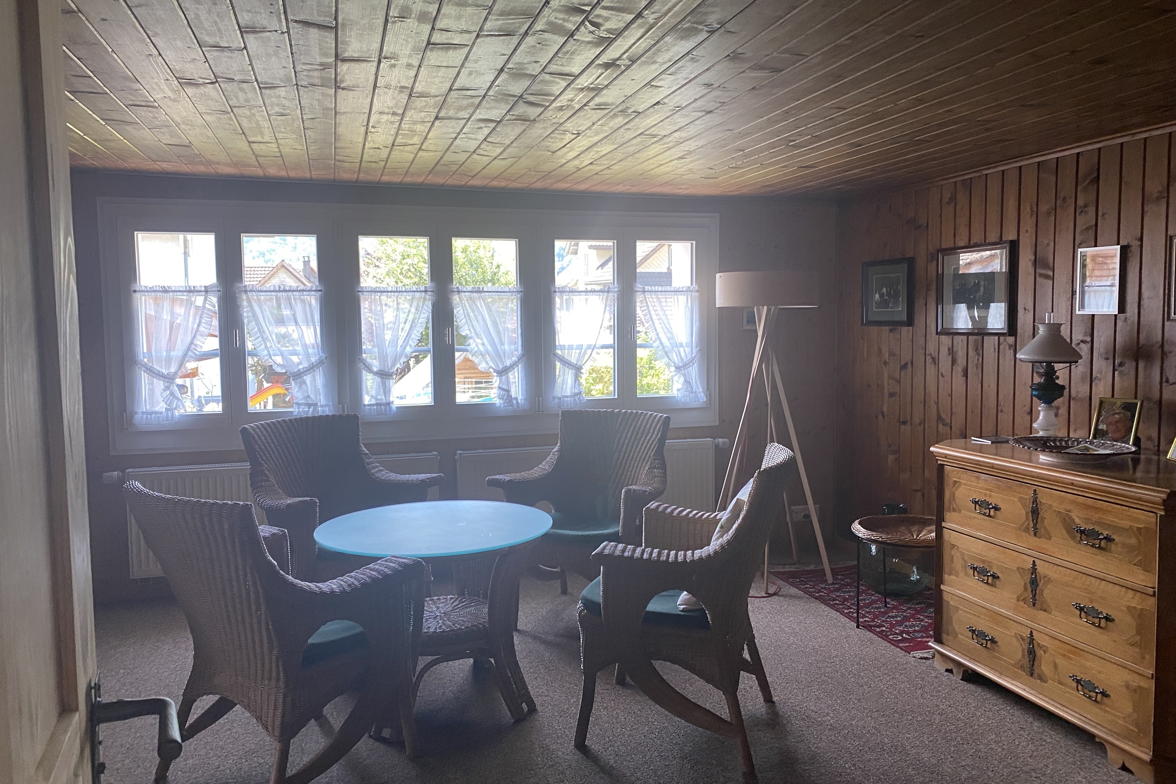 Ein grosszügiges Wohnzimmer (20m²) lädt zum gemütlichen Beisammensein ein. Hier finden Sie auch viele Bücher und Gesellschaftsspiele, die zum Verweilen einladen. Es ist kein TV vorhanden. Küche