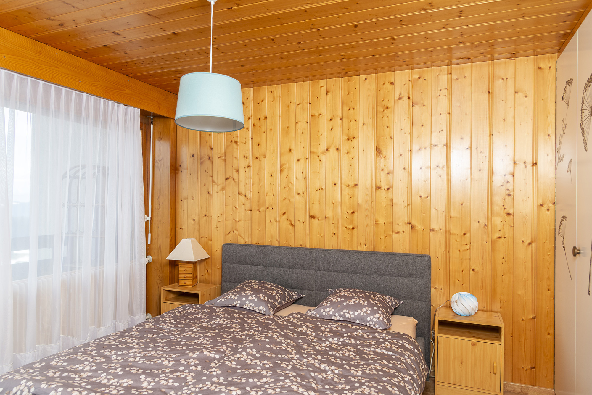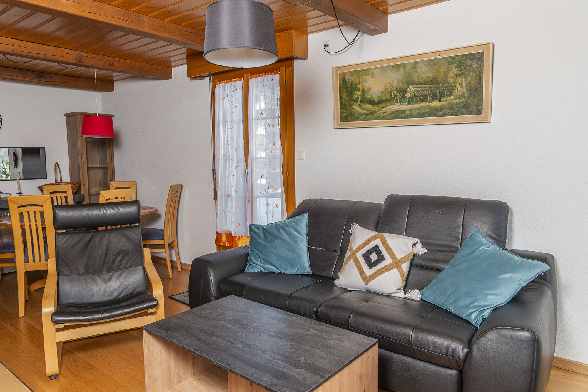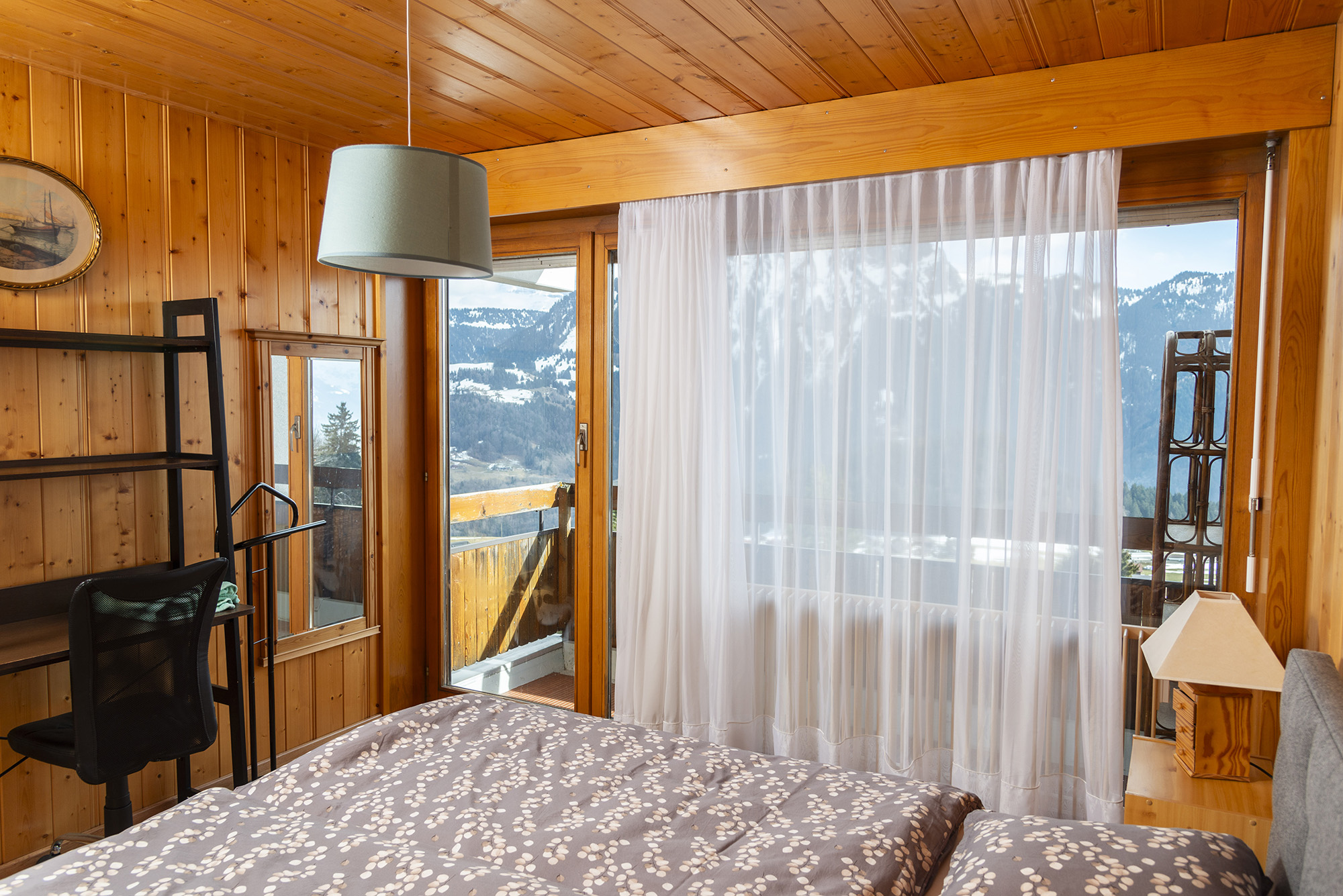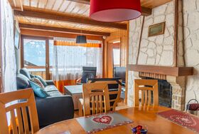3,5-Zimmer-Penthouse-Wohnung, 70m2, 4. Stock mit Aufzug, für 4 Personen. Es besteht aus einem Wohnzimmer - Essecke, Kamin, Wifi, TV. Die Küche verfügt über einen Herd mit Cerankochfeld, Backofen, Geschirrspüler, Wasserkocher, Fondue-Set und Raclette-Set. Es gibt ein Schlafzimmer mit einem Doppelbett (2x90x200), ein Schlafzimmer mit einem Doppelbett (clic-clac 140x200) und ein Bett (90x190). Die Wohnung profitiert auch von 3 Balkonen.