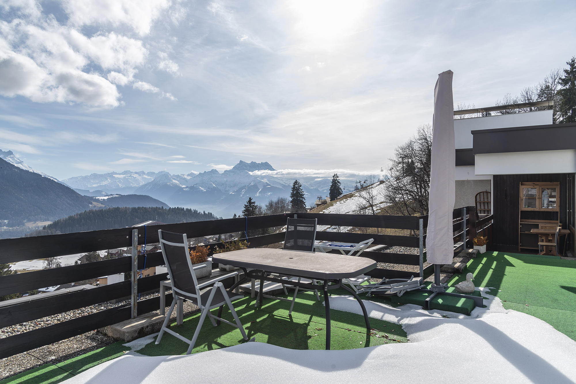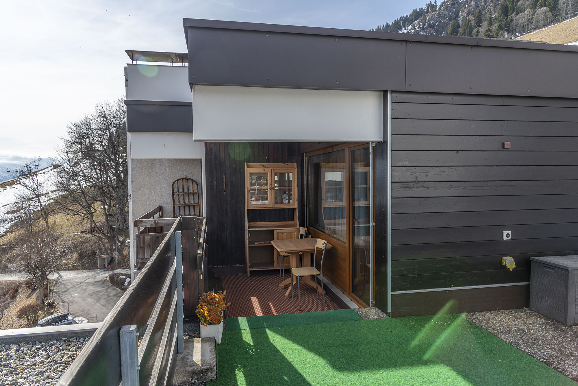 Die Wohnung befindet sich in einem Eigentumswohnungsgebäude im Viertel Les Esserts, im oberen Teil des Dorfes Leysin. Sie profitiert von einem Blick auf die Dents-du-Midi und einer Terrasse mit einem 360°-Blick auf die umliegenden Gipfel, maximale Sonneneinstrahlung. Es stehen auch eine gemeinsame Waschküche, ein Tiefgaragenstellplatz und ein Skischrank zur Verfügung. Das Gebäude befindet sich ca. 500m von den Skiliften und 20 Minuten zu Fuß vom Zentrum und vielen anderen Geschäften entfernt: Restaurants, Schwimmbad, Eislaufbahn und Rutschbahn.