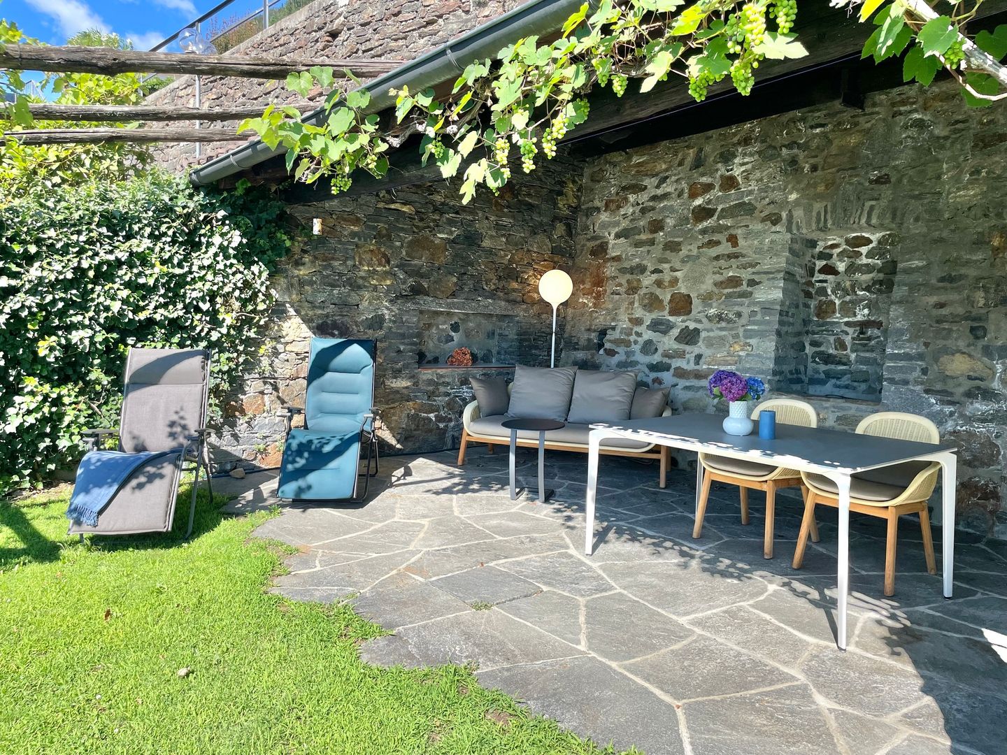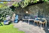 • Schattiger Terrassensitzplatz unter dem Kastanienbaum mit Esstisch