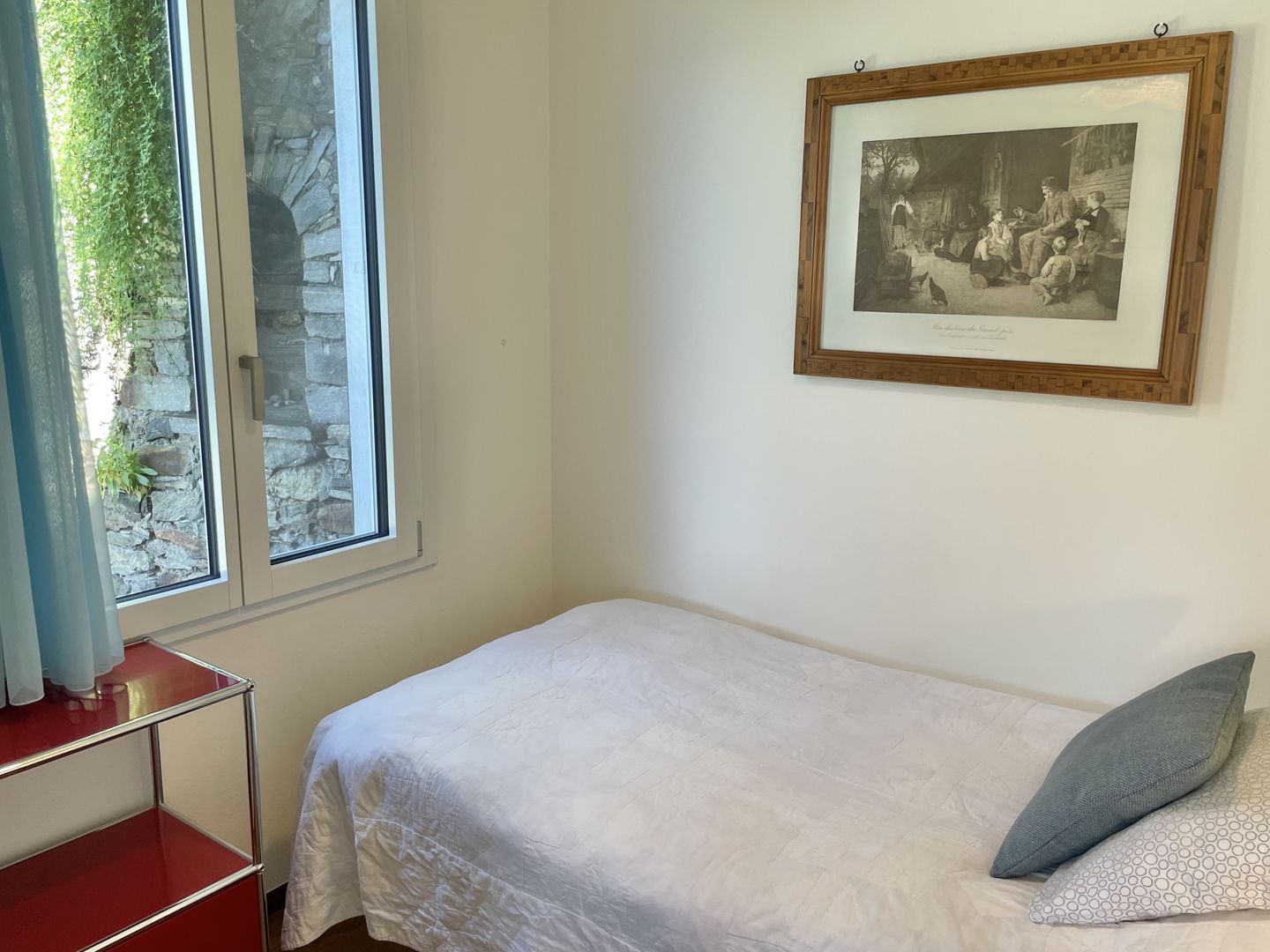 Das Ferienhaus Casa Pipistrello bietet Platz für 3 Personen und verfügt über einen grosszügigen Aussenbereich. Der überdachte Gartensitzplatz bietet ein gemütliches Loungesofa, einen Esstisch und Aussenkamin zum Grillen. Hier wird jeder Moment zu einem Genuss für die Sinne und zu einem unvergesslichen Erlebnis. An heissen Tagen finden Sie Abkühlung unter dem schattenspendenden Kastanienbaum, wo Sie das leichte Rauschen des naheliegenden Wasserfalls begleitet und frische Luft einatmen. Das Ferienhaus bietet insgesamt 60 m2 Wohnfläche und besteht aus einem hübschen Wohn- Essbereich, der über eine Klimaanlage verfügt, mit tollem Ausblick und Ausgang in den Gartenbereich, einer separaten, modernen Küche, einem Doppelschlafzimmer sowie einem kleinen Einzelzimmer. Das neu renovierte Badezimmer mit begehbarer Dusche und WC rundet das Angebot ab.