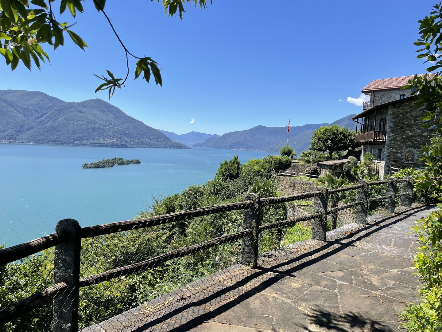 Das Ferienhaus Casa Pipistrello liegt in Ronco sopra Ascona, einer der schönsten und sonnigsten Lagen im Tessin. Die Sicht auf den Lago Maggiore bis weit nach Italien ist traumhaft schön. Ihr Auto parken Sie bequem auf dem Gelände, von wo Sie das Haus über eine Treppe (ca. 20 Stufen) erreichen. Die Zufahrt zum Haus führt über eine sehr steile Privatstrasse (ca. 80 m), ist somit für Sportwagen und niedrige Fahrzeuge nicht geeignet. Ideal für Gäste mit E-Auto, da sich auf dem Parkplatz eine Ladestation befindet, die Gäste ohne Aufpreis benützen dürfen.