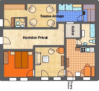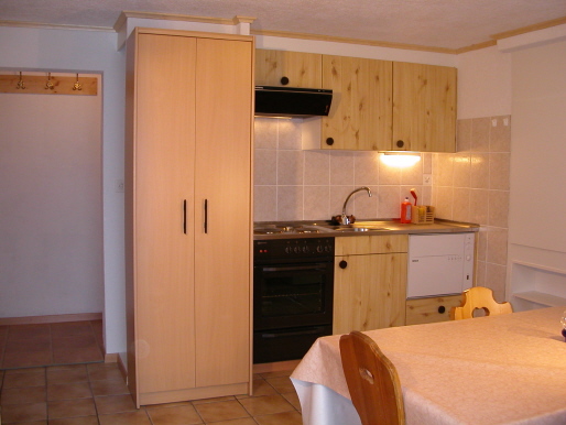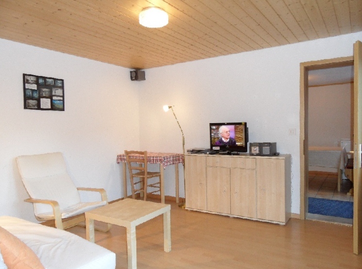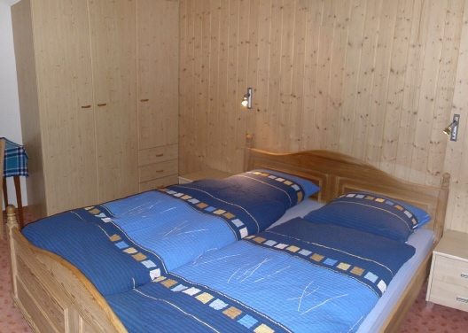 2-Zimmerwohnung im Parterre mit 1 Doppelschlafzimmer, geräumigem Wohnzimmer, abg. Küche, Dusche/WC. 55 m2 Wohnungsfläche. Die Küche hat vom Eierkocher bis zum Raclette- und Fondueset alles, inkl. Geschirrspüler. Wer nicht TV schauen oder Musik hören will, kann sich in der hauseigenen Sauna entspannen. Das Wohnzimmer hat ein Schrankbett 1.4m x 2m für 2 Kinder.